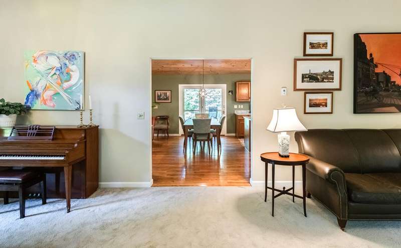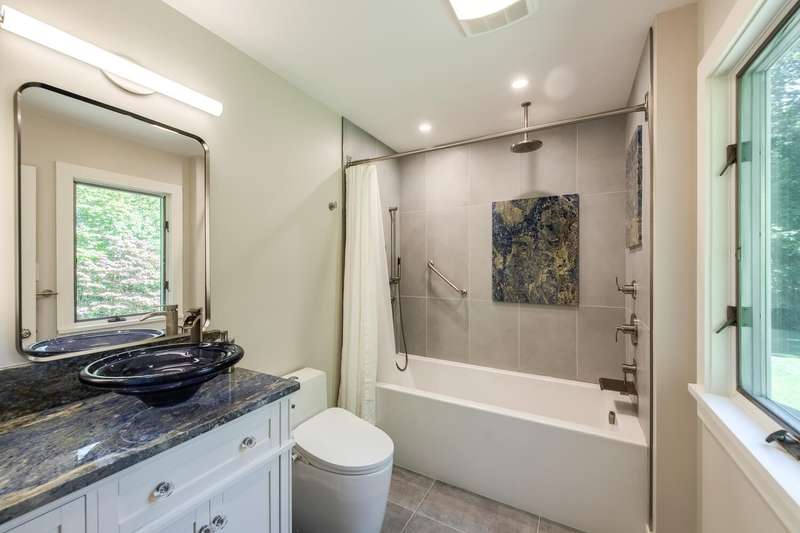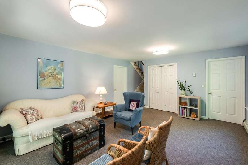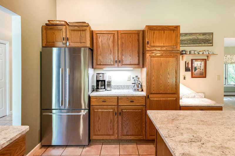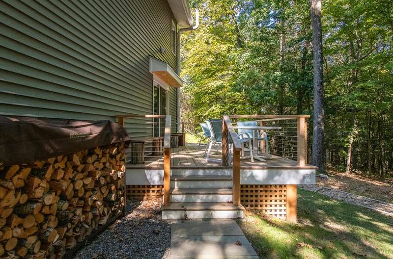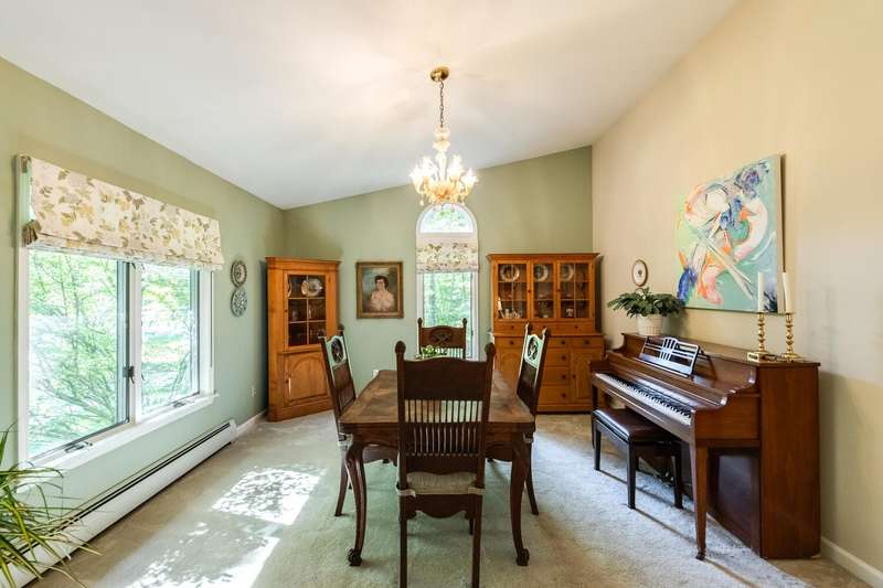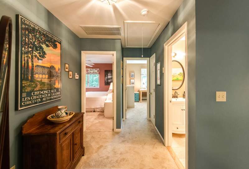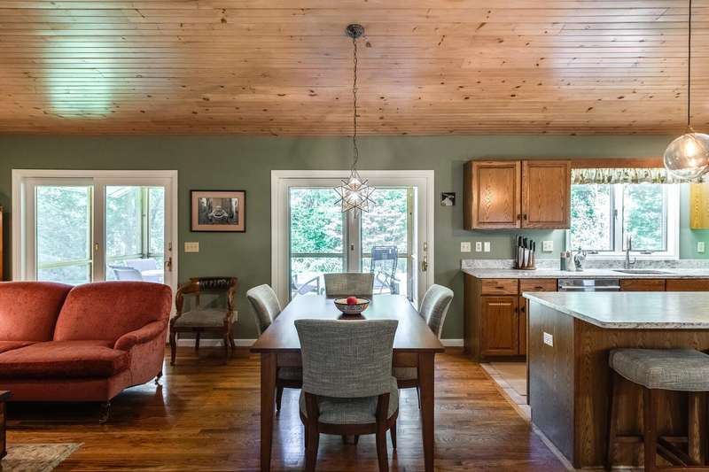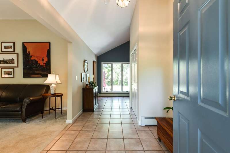 Tucked away at the end of a quiet cul-de-sac and abutting forever-protected land, this inviting home provides rare privacy just minutes from the vibrant villages of Red Hook and Rhinebeck. Resting on 2.33 serene acres with partially landscaped grounds, the house was chosen for its potential as a peaceful retreat. All enhancements to the land and house were done to create the feeling of healing sanctuary. A glorious Japanese maple graces the entrance to the property, and the open lawn invites further landscaping possibilities. Inside, thoughtful updates blend comfort and functionality. The primary suite is a personal haven, featuring a spa-like bath with a clear blue glass vessel sink, vanity and murals of blue mineral, soaking tub, rain and handheld showers, safety bar, ceramic tile flooring, and a bidet toilet. The suite also includes a large walk-in closet with double bars, ten shelves, and natural light from its own window, plus a generous linen closet with suitcase storage. The second full bath offers a beautifully tiled shower with rain and handheld fixtures, bronze accents, and glass door. A stylish powder room features a marble vanity and tiled floor.The homes layout offers versatility with three spacious bedroomsone currently set up as a studio/sewing room/officeand an airy living/dining area with cathedral ceilings. The family room is warmed by a brick fireplace with heat vents, hardwood floors, and a charming pine ceiling, with sliders opening to the brand-new screened porch (2024). A modern deck with cable railing, also added in 2024, extends outdoor living and overlooks a 40-foot bluestone labyrinth in the woods. The deck and porch have mahogany floors, cedar posts and pine ceilings. A new roof was added in 2022. The kitchen is designed for both cooking and gathering, featuring granite counters with a leather finish, a large center island, a built-in desk area, stainless Fisher & Paykel appliances (propane oven/range, refrigerator and dishwasher, new 2018/19), and microwave. A tiled foyer, powder room, and laundry room with washer, dryer, scrub sink, and tile flooring add convenience.The centerpiece of this retreat is the labyrinth, equipped with safe pathways and outdoor lighting to facilitate night-time walks. Crystals are embedded in the four directions corresponding to the elements (north/earth, west/water, south/fire, and east/air) to support the guardianship of the labyrinth and enhance its power as a contemplative tool. The land on this beautiful property has more to give and awaits further discovery.