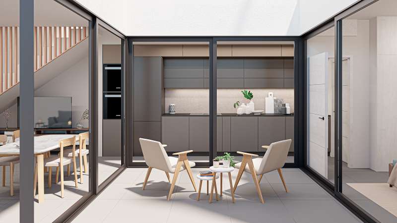 Each townhouse features 3 spacious bedrooms, 2 well-appointed bathrooms, and open-plan living spaces. The fully fitted kitchen comes equipped with premium appliances, and the bathrooms are designed with contemporary fixtures. The homes also include pre-installation for air conditioning to ensure year-round comfort.