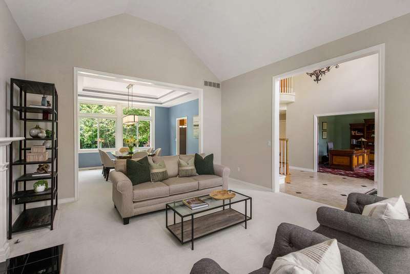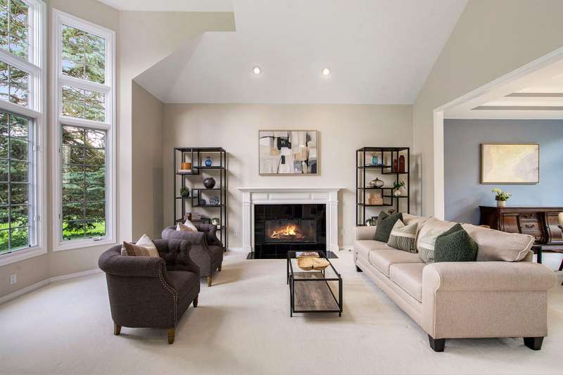 Nestled on an expansive, professionally landscaped 2-acre lot, this impressive custom-built home is sure to amaze you. As you enter, you'll find a bright two-story foyer featuring a beautifully curved staircase, perfect for welcoming guests. The spacious living room boasts high bay windows and an elegant fireplace with a granite surround and wood mantel, while the beautiful dining room showcases a stunning double-tiered ceiling detail and designer lighting. French doors lead to an inviting study adorned with arched windows. The large kitchen, outfitted with stainless steel Viking appliances and a generous island, opens to the breakfast/sunroom and family room, making it ideal for gatherings. The family room offers a cozy fireplace and new carpeting. Step outside to enjoy a spectacular courtyard and patio with an outdoor brick fireplace, retractable awning, and surrounded by stately mature trees. The first floor includes a laundry room and a powder room. Upstairs, the serene primary suite features a separate tiled shower and a spa tub, 2 separate vanities, and a walk-in closet. There are three additional bedrooms one with an en-suite bathroom, while bedrooms 3 and 4 share a third full bath. A three-car garage equipped with a 220 plug for electric vehicles adds convenience. Most windows have been replaced with Andersen models, and the full basement is ready for your personal touch. The exterior has been freshly painted. This wonderful home is conveniently located near Ann Arbor, M-14, and major routes, in the Ann Arbor School District.