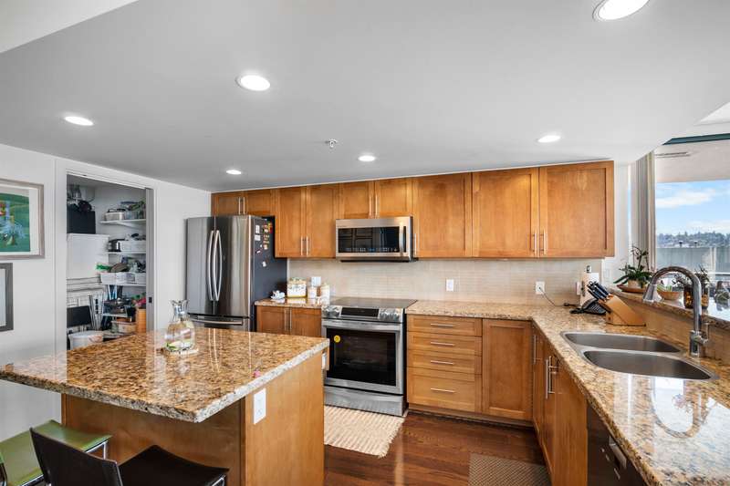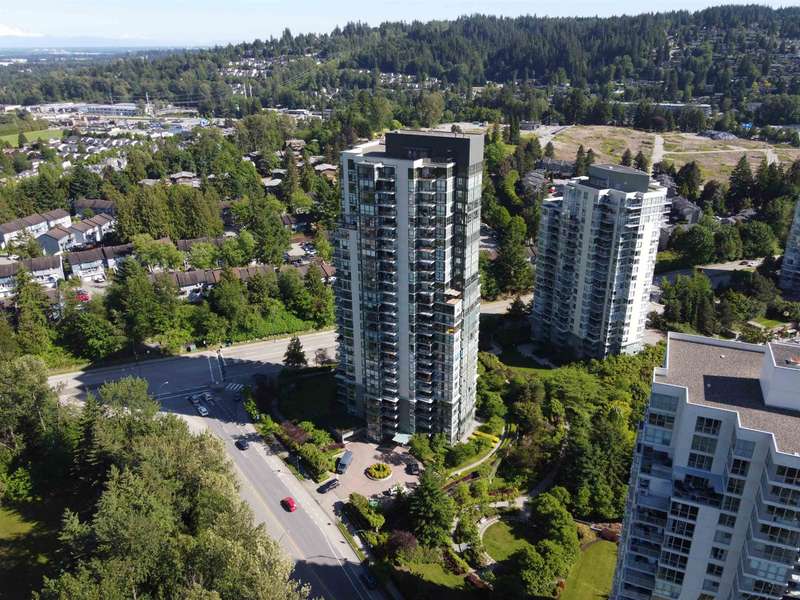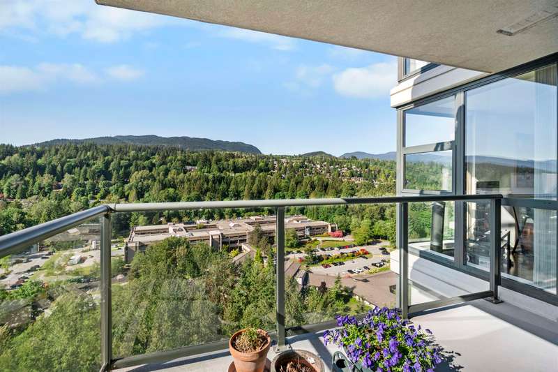 180 Degrees NSW panoramic unobstructed mountain/ocean View from all rooms at The Crescendo! This well maintained luxurious 1670sf corner unit features: walk-in closet & walk-in pantry, engineered wood floors, upgraded S/S appliances, granite countertops, 2 balconies, 2 pkgs & locker. Den can easily be converted into a 3rd BR. 288 Ungless is walker's paradise with the walk score of 91 out of 100. 9-min walk from the Millennium Line at the Inlet Centre Station. Nearby parks incl Pioneer Park & Town Centre Park. Mins walk to Eagle Ridge Hospital, Newport Village. Easy access to Barnet HWY to Vancouver. NO PET! Schools: Eagle Ridge Elementary, Scott Creek Middle & Gleneagle Secondary. Building approved air con installation. Rarely avail! Don't miss this gem!! OPEN Sat & Sun Aug 2 & 3, 2-4pm.