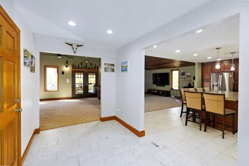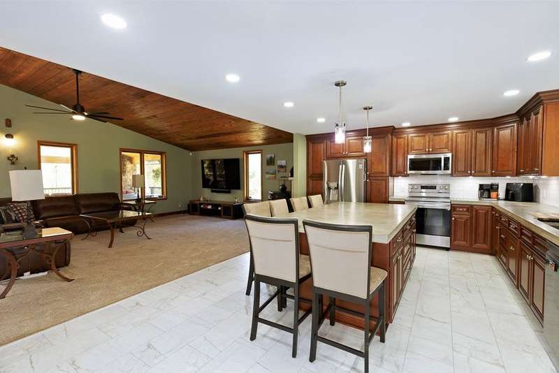 Acreage, space, MAJOR renovation and Close to everything with Washington County taxes...YOU HAVE FOUND THE ONE! This 3 bedroom, 3 Full bath on 10 ACRES has undergone a stunning renovation. The modern kitchen with GIANT concrete island and open concept design leads to the MASSIVE great room that measures 40 feet long. One of two laundry areas is steps away in the full first floor bath. Enjoy outdoor dinner or movies on the Lodge inspired upper level deck area. One of two laundry areas is steps away in the full first floor bath. First floor primary bedroom with stunning views and a luxurious ensuite leads to one of the easily accessible outdoor spaces. The lower level has a second kitchen and laundry with the remaining two bedrooms and living area that could be a mother in law suite or even an Air BNB. The 10 acres of land contain a man made pond stocked with fish, lots of wooded areas for adventures and plenty of opportunities to observe wildlife.