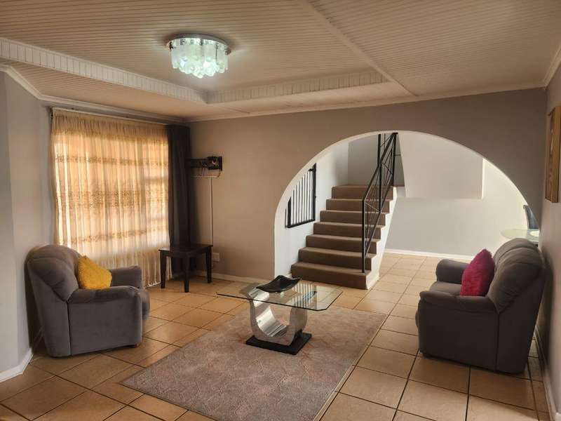 This well-maintained, move-in-ready home offers everything a family needs ?Çö space, comfort, and location. Situated on a large, level erf and fully walled, it?ÇÖs perfect for secure and spacious living. Property Features: Double-storey layout with great natural light 5 spacious bedrooms 1 main bedroom with en-suite bathroom 4 additional bedrooms with built-in cupboards 2 bathrooms in total (including the en-suite) Open-plan lounge and dining area with excellent flow Feature staircase leading to upstairs bedrooms Airy, open-plan kitchen with modern fittings Double garage with secure parking Fully walled property offering privacy and peace of mind Huge level erf ?Çô ideal for gardening, children to play, or future additions Located in a good, established area Just move in ?Çô no work needed Ideal for families needing space, comfort, and security in a sought-after location. For a viewing arrangement you know what to do !!