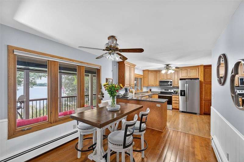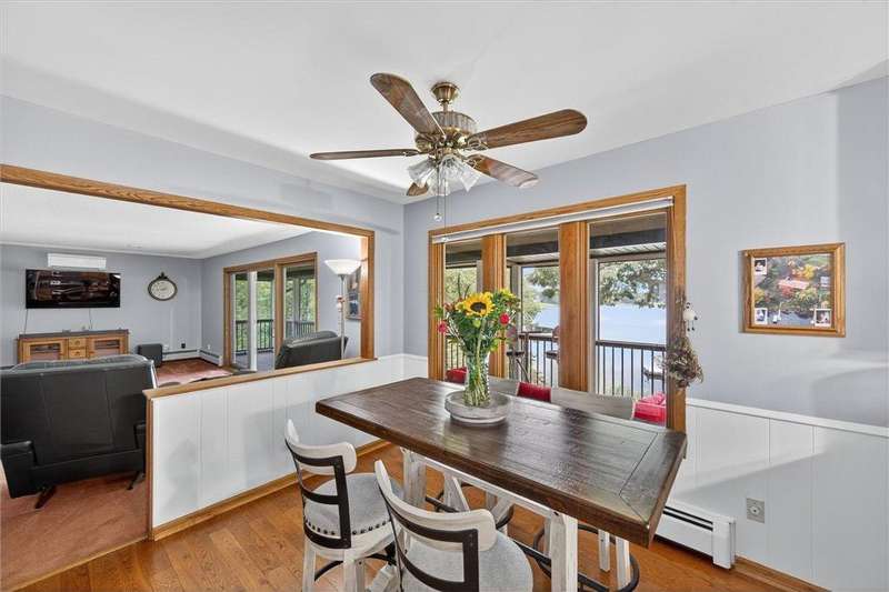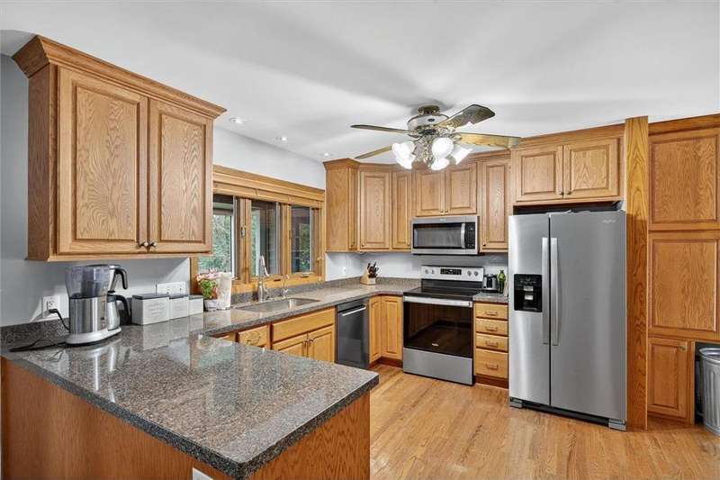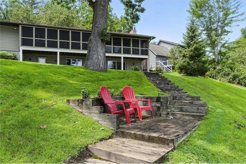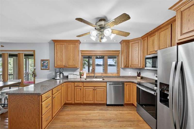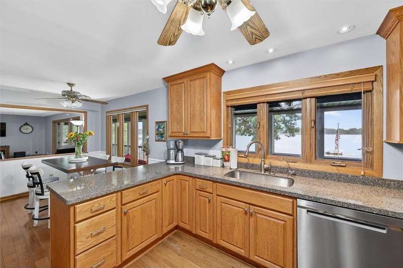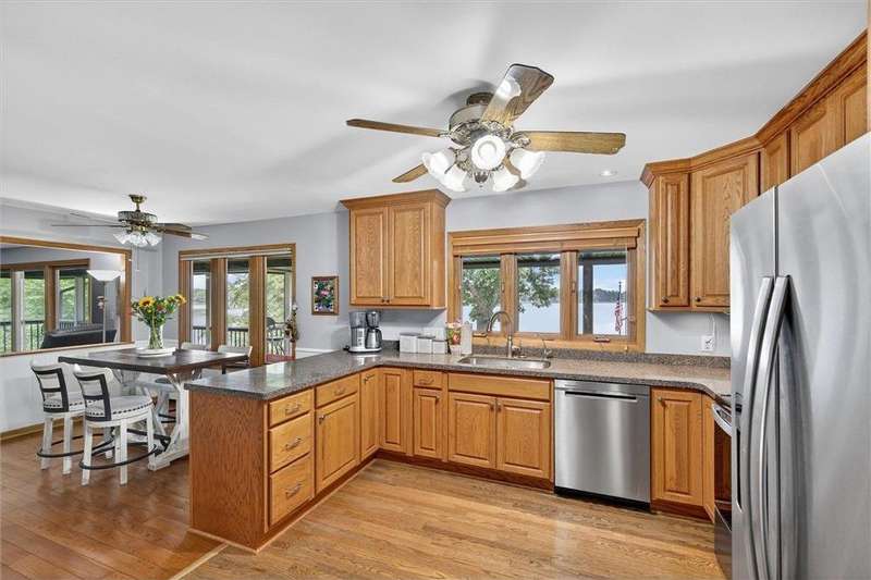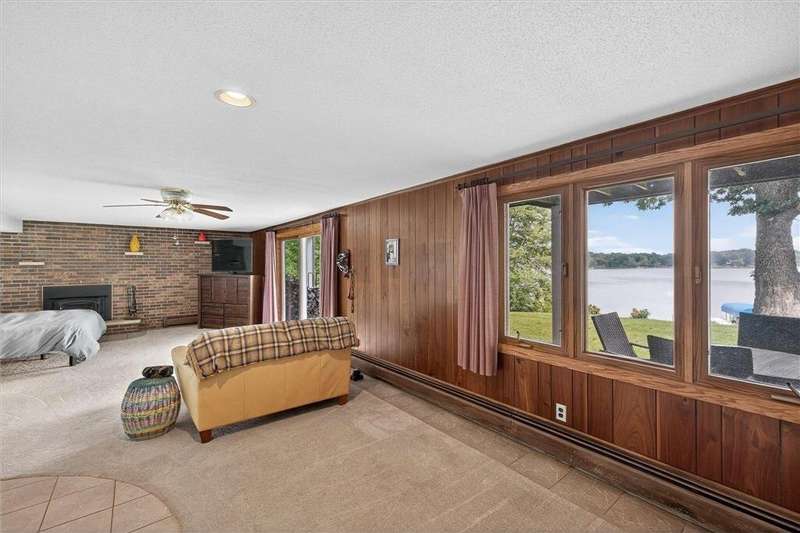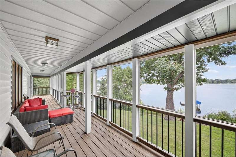 Motivated Sellers! Enjoy panoramic views from this spectacular 1-level remodeled home on sought after Comfort Lake. Enjoy summer evenings mosquito free in the screened porch that spans the entire back of the home with maintenance free floor. The updated 50-foot dock offers plenty of space for all your watercraft. Get out on the water and fish for Largemouth bass, walleye, perch, crappie, northern pike, and musky. Comfort Lake has 3 areas at nearly 50 feet depth and is known as one of the areas deepest and cleanest lakes. Sellers meticulously cared for this home. Added new top of the line Whirlpool appliances, new Samsung washer/dryer, annual checks on Boiler system, fresh paint, new wood on dock, extensive landscaping, top of the line 3ft eaves gutter guards around entire home, opened the wall from kitchen to great room to offer better views of the lake and so much more! Sellers currently have lower level family room set up as a primary suite as they love to wake up to the sunrise over the water! Mini split air/heat system offers comfortable and affordable heating and cooling all year, however, with the tree coverage they rarely need to use the air conditioner. The lower level fireplace will heat the entire home! Outside, notice the Walnut trees in the front yard offering shade and beauty! An additional garage provides room for your boat during the winter or change it to a she-shed/man cave with the storm door on the side this could be fun for a get-a-way or entertaining outdoors meanwhile there is also a lakeside shed for storing the dock and/or lake toys. Be sure to step out on the dock and look both at the water and than back at the home and all the beauty that surrounds you! There is a 3000lb two year old cantilevered boat lift available for sale outside the home sale. 25 minutes approximately to airport and everything the Twin Cities offer yet away from the noise!