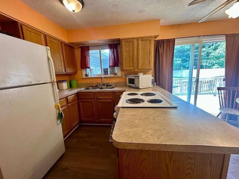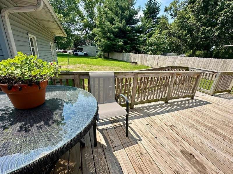 Everything on one level! This 1416 sq ft ranch home with 2 car attached garage, features, 3 bedrooms with hardwood floors and an updated bath with walk-in shower and tile flooring. The living room has new flooring that also flows into the kitchen and dining area. 14 x 11 sunroom, 13 x 11 utility room with washer and dryer. Furnace was new in 2019, AC new in 2022. Relax on the new (2024) deck (with ramp) that over looks the .30 acre, fenced yard.