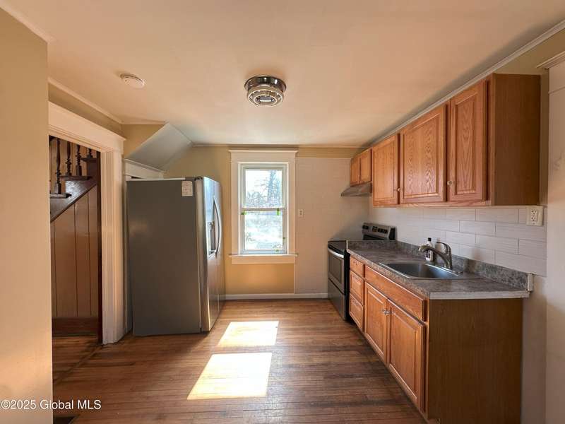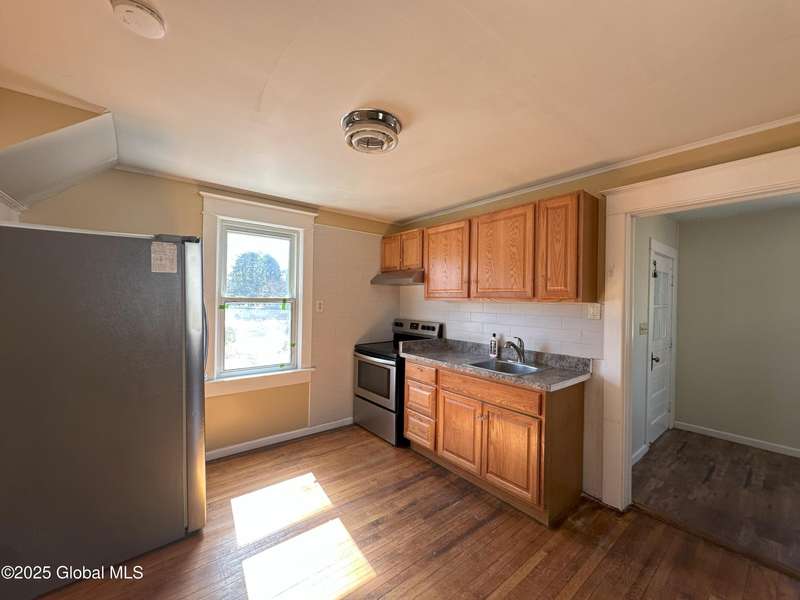 Conveniently located Cape Cod in Schenectady School District on large lot. Features 2 beds, 1 bath. Kitchen and bath have been updated with stainless steel appliances and ceramic tile. New circuit breakers and stockade fence (1 yr) that backs up to golf course. Full basement and plenty of off street parking. Large living room. Gas furnace is newer (4 yrs). Newer vinyl replacement windows.