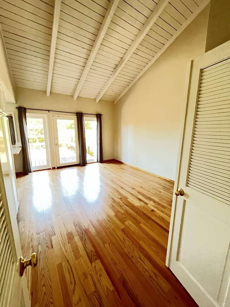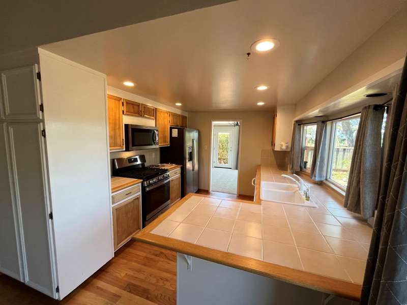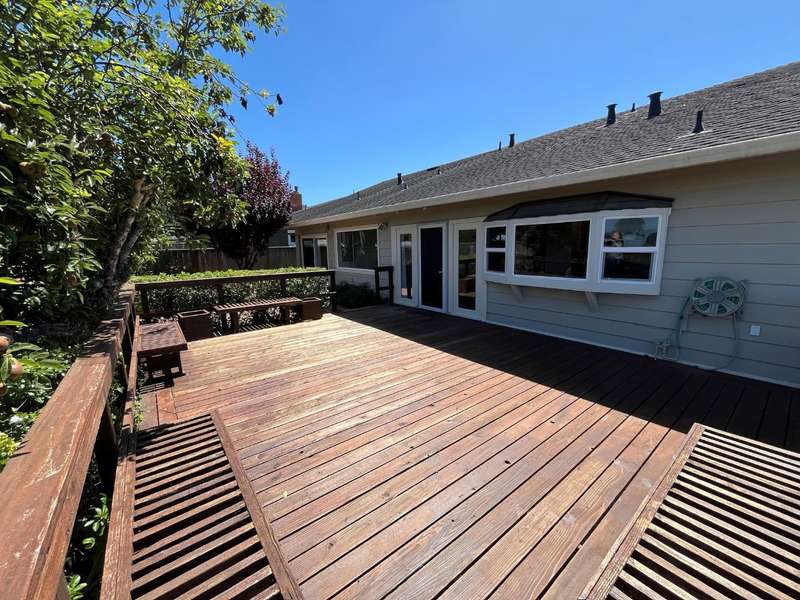Welcome to your ideal home-a peaceful and spacious retreat perfect for comfortable living. This bright and beautifully maintained single-level ranch-style home has 3 bedrooms and 2 baths. Vaulted ceilings in the living/dining room, family room, and primary bedroom provide an open feel with abundant natural light. The primary suite opens to the rear yard via a private slider, and the family room and dining area lead to a spacious rear deck with yard/patioperfect for al fresco living. Backed by a commercial nursery to the rear, there are no rear neighbors for added privacy. Recent updates include new carpet, refinished hardwood floors, a new washer/dryer, as well as newer appliances. The garage features two 220V EV outlets for convenient charging. Exterior highlights include mature landscaping with gardening service paid for by the owner, as well as a half-moon driveway for easy parking. It's located in the desirable Frenchmans Creek neighborhood with quick access to Highway 1 via traffic light, as well as just minutes away from the Coastside trail. Only a 20-minute walk to the beach! 12-month lease, extendable.