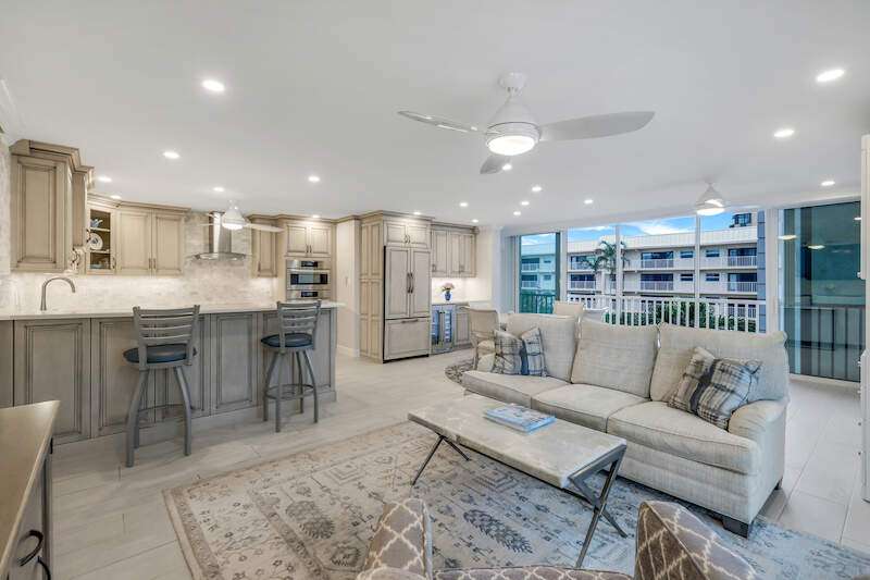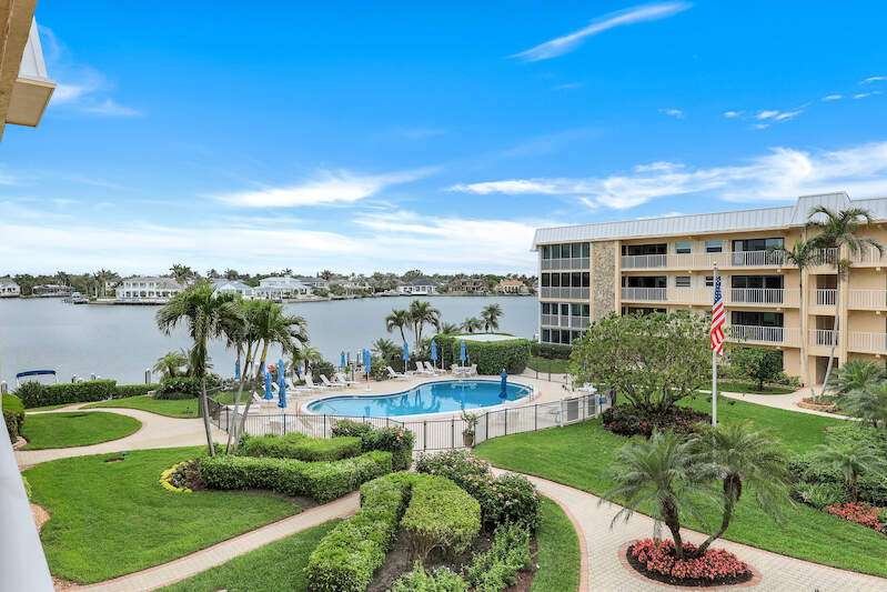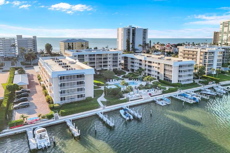 You want an updated condo that is "move-in-ready" with partial gulf & bay water views, well, here it is. Fully renovated & turnkey furnished, this 2-bed, 2-bath, 3rd floor condo w/common elevator, has 2 open-air lanai's (W & NW), impact windows, doors & sliders, remote shades in select living areas, in-unit laundry, Bosch & Kitchen-Aid appliances, tile flooring throughout & deeded covered parking space. Views, beach access directly across the street, on-premise amenities, beautiful grounds, a Gulf Shore Blvd. N. location & a short walk, bike ride or drive to all that Venetian Village has to offer. Be in the heart of it all, at a pace that you set. La Maison Club amenities include a large community pool with Moorings Bay as your backdrop, outdoor grills w/social area, community room, fitness center, guest suite & kayak storage w/launch point. On occasion, you may find a boat slip for sale or for lease within the La Maison Club community itself. Your piece of Paradise awaits you!!