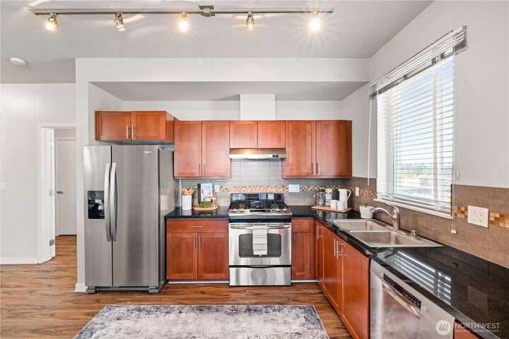 ESTATE SALE – PRICED TO SELL AT AN AMAZING PRICE! ONE-YEAR OF HOA DUES INCLUDED WITH FULL-PRICE PURCHASE! This stunning top-floor corner home offers the perfect blend of style, comfort, and convenience. Highlights include an open floor plan, 2 bedrooms, 2 bathrooms, a wrap-around view deck, beautiful LVT flooring, and newer appliances. ADA compliant and just steps from the elevator, secure garage parking, additional storage, plus access to community amenities like a fitness center, BBQ/patio areas, and a gorgeous community room. Enjoy the unbeatable location - walking distance to the library, post office, restaurants, and shopping—just minutes to local favorites like the Farmers Market, Concerts in the Park, and dog park. Move-in ready!