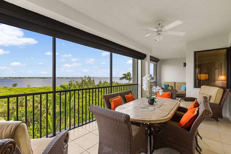 TEMPORARY MEMBERSHIP SAVINGS - LIMITED TIME! Take advantage of Gulf Harbour's special offer: the Sports Membership joining fee has been reduced by $32,000! For a limited time, join for only $20,000 and unlock the exclusive Gulf Harbour lifestyle. Palmas del Sol in Gulf Harbour | Elegant 3-Bedroom with Sweeping River Views! Where living in PARADISE is a LIFESTYLE! Experience luxury waterfront living in this rarely available Barcelona floorplan at Palmas del Sol, one of Gulf Harbour Yacht & Country Club's most prestigious mid-rise communities. This condo is being sold TURNKEY and is perfectly positioned on the 4th floor, this TRUE 3-bedroom, 2.5-bath residence spans over 2,500 sq. ft. and showcases unobstructed views of the Caloosahatchee River, with natural light and tranquil vistas at every turn.Oversized under-building 2 1/2-car garage-fits two full-sized vehicles PLUS A GOLF CART!! Step inside to an open, thoughtfully designed floorplan that effortlessly blends comfort and sophistication. The chef's kitchen is both functional and stylish, featuring 42" white cabinetry, granite countertops, GE Profile stainless steel appliances, a sleek induction cooktop, breakfast bar, and a charming breakfast nook with views of the 3rd fairway-ideal for your morning coffee. The kitchen opens to the spacious living area, where expansive windows frame the shimmering river and create a seamless connection to nature. Step out onto the screened lanai, protected with hurricane screens, and enjoy breathtaking sunsets from the privacy of your own home. Peace of mind continues with hurricane-impact windows and doors throughout the unit. The primary suite is a true retreat, offering stunning river views, a spacious seating area currently used as a home office, and direct lanai access. The ensuite bath features dual granite vanities, a walk-in shower, and a spa-like soaking tub-perfect for unwinding. A split floorplan ensures privacy for guests, with two additional bedrooms and a full bath with a walk in shower, floor to ceiling tile and a half bath for guests located on the opposite wing of the home.Additional highlights include, Resort-style pool and hot tub-arguably the best in Gulf Harbour!! Community clubhouse with a library, TV lounge, private meeting room, and kitchenette. Lush landscaping and a vibrant social atmosphere. Private memberships are available for immediate purchase, granting access to Gulf Harbour's world-class amenities: a championship golf course, 8 har-tru tennis courts, a deep-water 186 wet slip marina with direct Gulf access, fitness and spa facilities, and fine dining at the clubhouse. Where else would you want to be? This exceptional residence delivers the ultimate in Florida waterfront lifestyle-luxury, privacy, and an unmatched community experience.