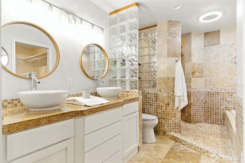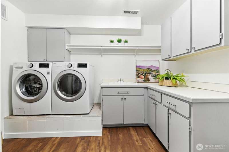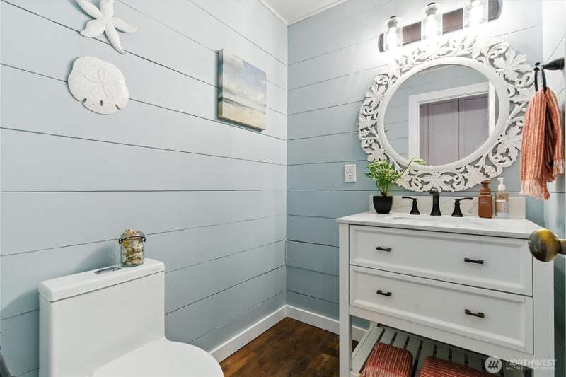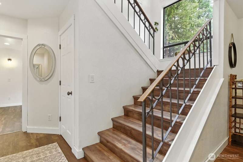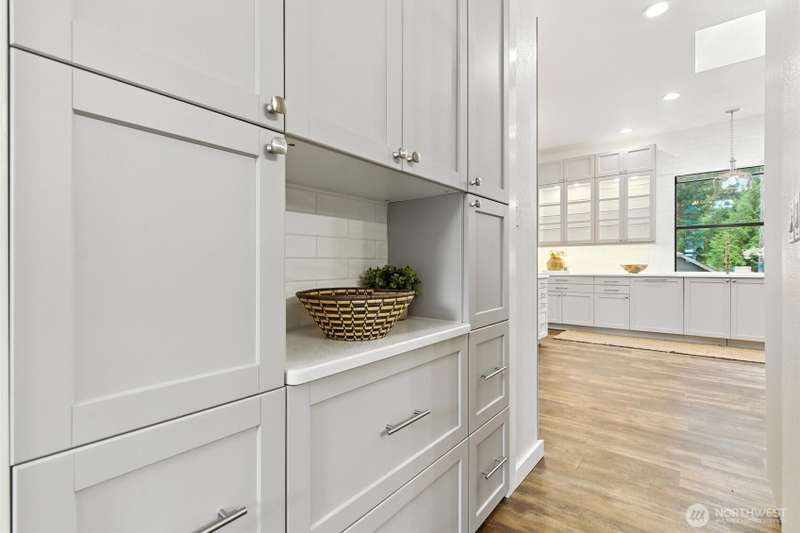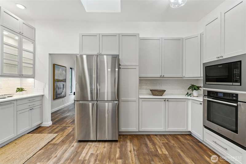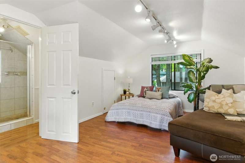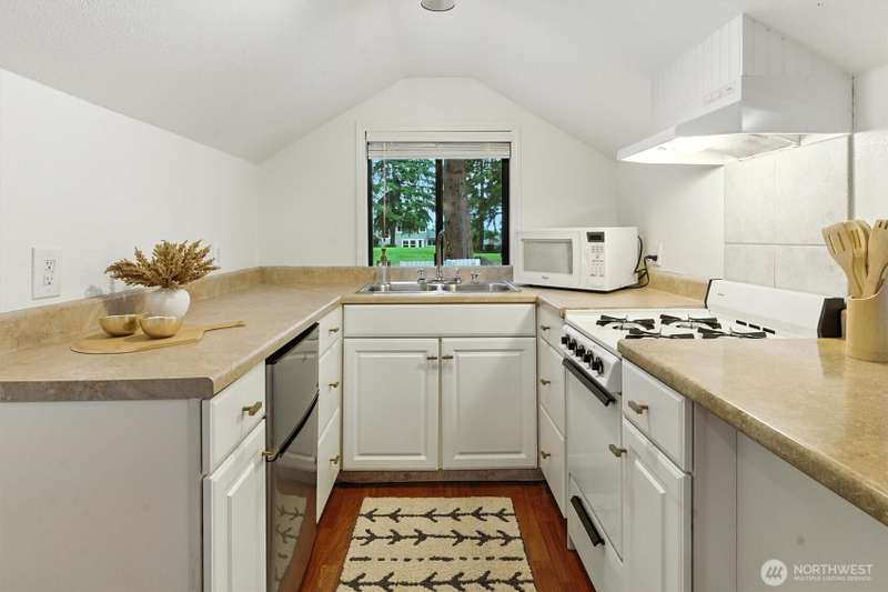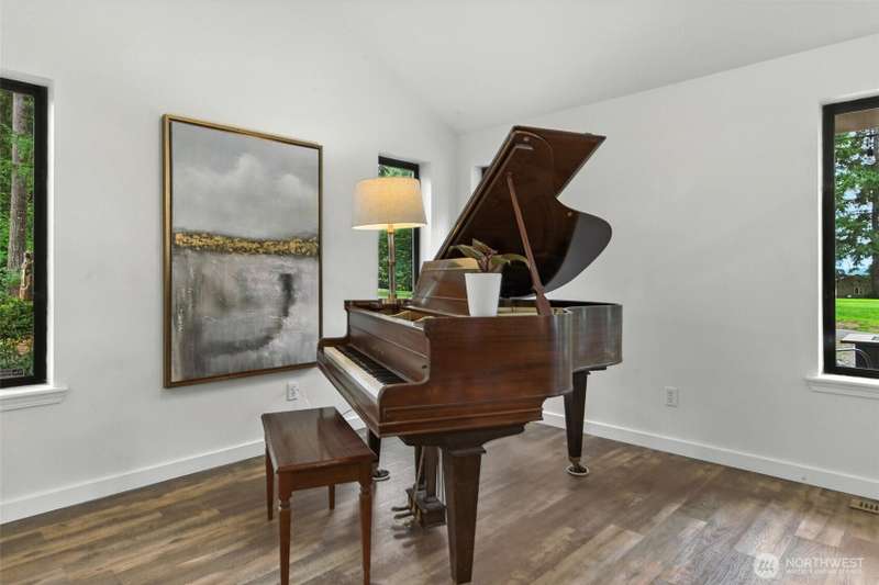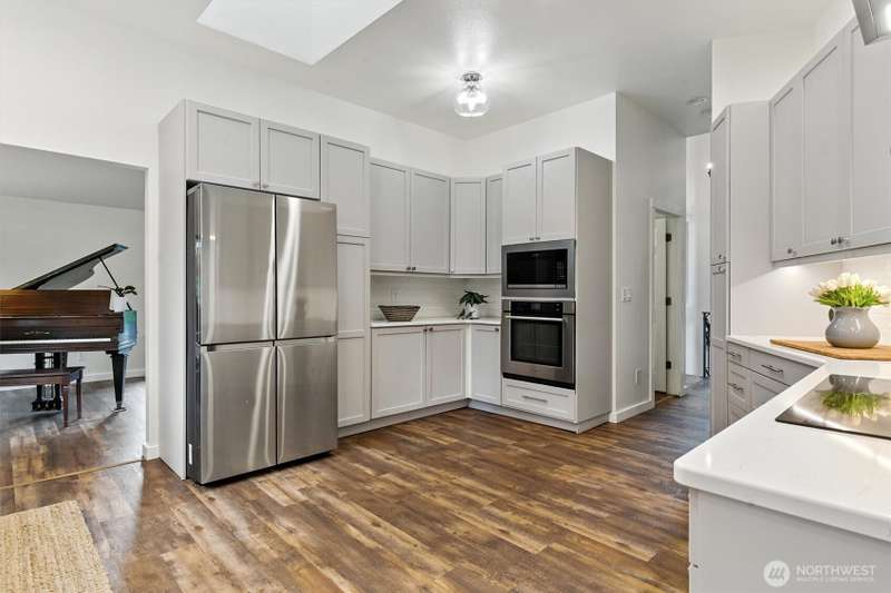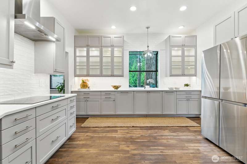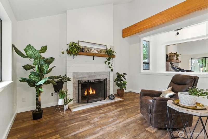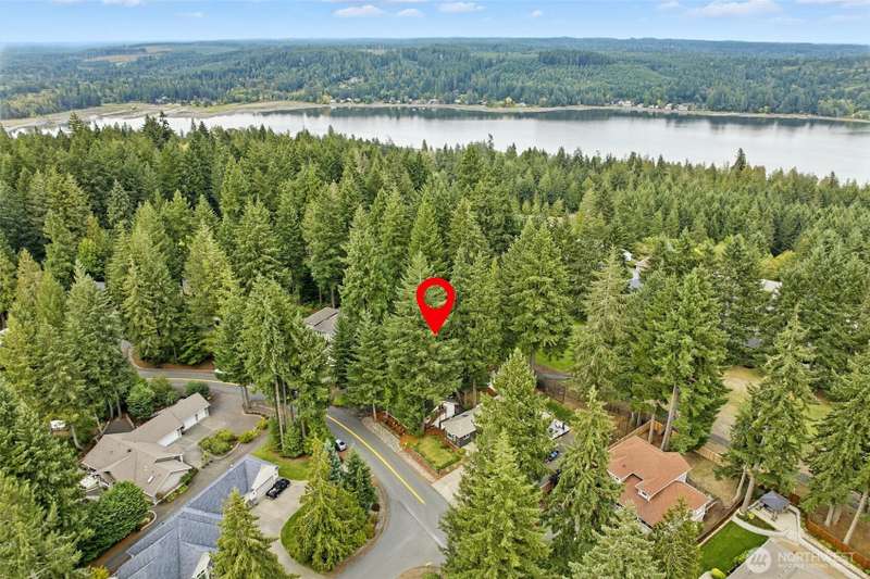 Lakeland Village Stunner! Sophisticated NW contemporary masterpiece on the golf course with a private studio retreat above the garage featuring a kitchenette. Dramatic vaulted ceilings, walls of natural light, & two wood-burning fireplaces complement exquisite LVP hardwoods throughout. The brand-new chef’s kitchen is a culinary showstopper, ideal for gatherings, with expansive quartz countertops & dry bar area. Entertain in style on the brand new back deck with fairway views, or enjoy al fresco dining on the elevated front BBQ deck. Lush, manicured landscaping surrounds a home that offers both elegance and function, with detached two-car garage, extended drive & RV parking. A rare blend of modern style, functionality, & golf course views!