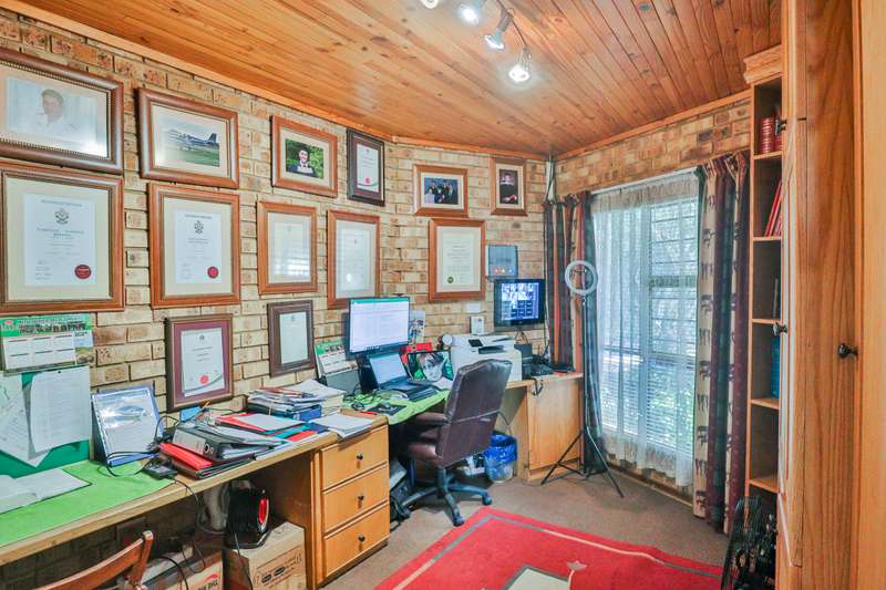 Nestled in the serene neighborhood of SchoemanVille Harties, discover a captivating three-story family residence that exudes timeless charm and modern convenience. This distinguished home features five spacious bedrooms, including a dedicated nanny room, and three additional bathrooms, ensuring ample space and comfort for a growing family. The dining room provides an elegant setting for family meals, complemented by four balconies that offer stunning views of the surrounding area. A welcoming patio extends the living space outdoors, perfect for entertaining guests or enjoying quiet moments amidst the natural beauty. The well-appointed kitchen is equipped with modern amenities, catering to culinary enthusiasts. Two garages and additional parking spaces ensure convenience for residents and visitors alike. Constructed with face brick, the house exudes a rustic yet sophisticated appeal, blending seamlessly with its natural surroundings. Complete with a comprehensive security alarm system and an electric gate, residents can enjoy peace of mind. Benefiting from an area with no load shedding, residents can fully appreciate the lush garden, refreshing pool, and inviting braai area, ideal for hosting gatherings with family and friends. Notably, the property boasts a picturesque dam view, adding to its allure and providing a serene backdrop to daily life. This residence harmonizes old-world charm with modern comforts, presenting an exceptional opportunity for discerning buyers seeking a blend of elegance and practicality in a sought-after location like SchoemanVille Harties.