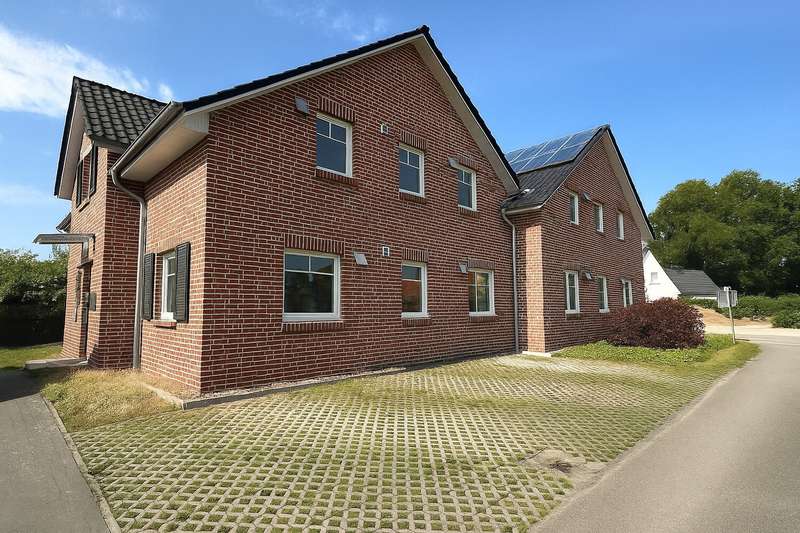 Are you looking for an attractive capital investment or a residential concept with a variety of possible uses in a central yet quiet location? Then we have the right offer for you! This as-new property, which was only built in 2017, is in a prime location in the town of Dinklage and has a total of two residential units with a total living space of approx. 183 m². In addition to the half of the house offered here, the second, almost identical half is also for sale separately. The two residential units of the half of the house under consideration here are currently rented out reliably and are spread over two floors: The first floor apartment comprises approx. 95 m² of living space, the apartment on the top floor approx. 88 m². Both units have an identical floor plan with a spacious living room and a separate kitchen. Both the living room and the kitchen on the first floor offer direct access to the covered terrace with a large garden area, while on the top floor they each lead onto a spacious balcony. The apartments are each complemented by two bedrooms, a bathroom, a guest WC and a utility room. The property impresses with its generous proportions and high ceilings, which create a particularly open and airy feel. The appeal of this property is rounded off by modern, high-quality fixtures and fittings, including a ventilation system and energy-efficient construction. Each residential unit also has its own heating system. The half of the house includes a double carport and up to five additional parking spaces as open space. Each residential unit also has a storage room. Have we piqued your interest? Then we look forward to hearing from you! Please note: An energy certificate was not yet available at the time of the advertisement. The real division and thus the official division of the property is still being carried out; the property size stated here is therefore initially an approximate estimate.