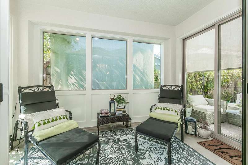 Outstanding 3 Bedroom 2 1/4 bath home at Canvas on the Bluffs a gated community at Copper River. Solar OWNED!!! This home boasts tons of upgrades that include ceramic tiled wood/plank floors, upgraded carpeting in the bedrooms, upgraded light fixtures and chandelier. The home has a fourth room used as an office with glass doors, Gourmet kitchen with an upgraded Farm House sink and granite counters with tile back splash. The Seller has added a screened in Sun Room overlooking an English styled landscaped backyard. The finished 2 car garage also has an epoxy finished concrete floor. Come view this elegant home which is located close to Fugman Elementary, Granite Ridge and Clovis North High School.