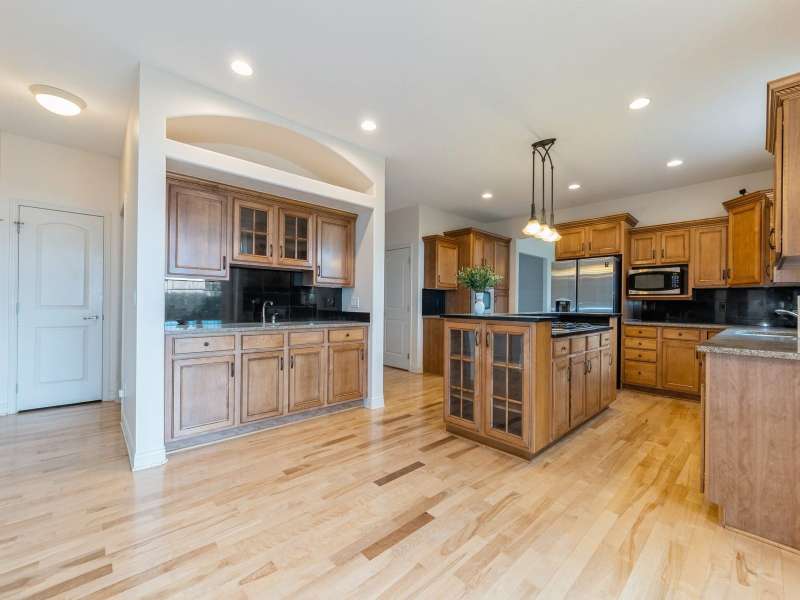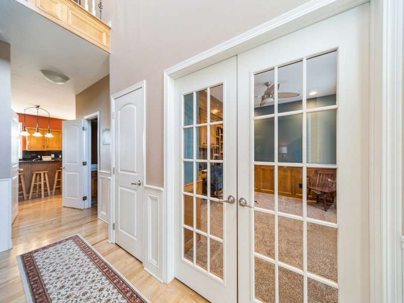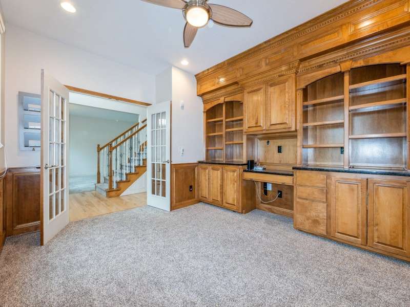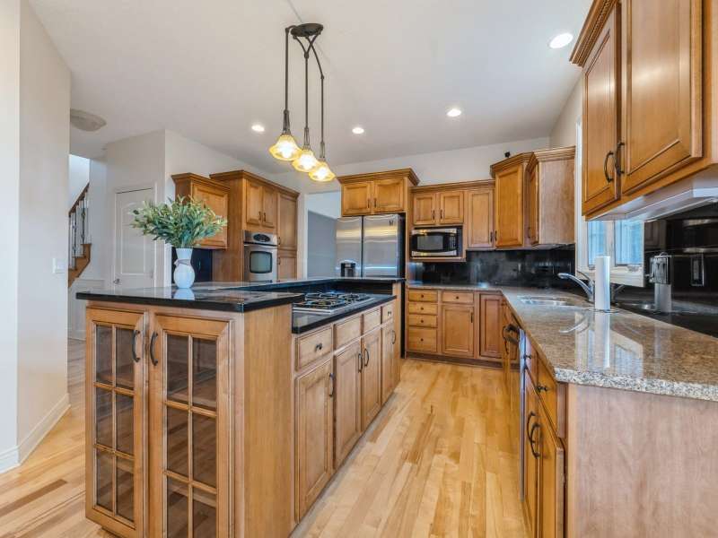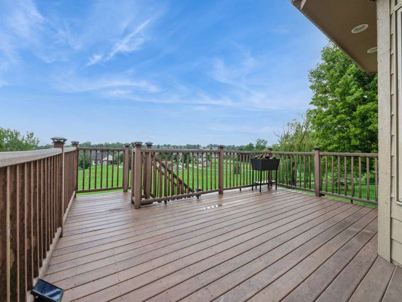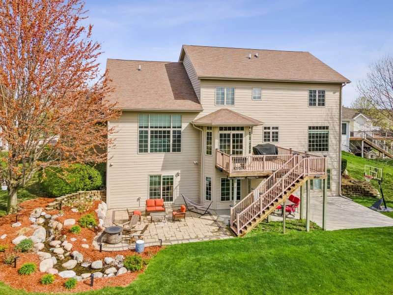 Beautiful home on a spacious 0.5-acre lot on Cul-de-sac backing up to Deer Ridge West Park. The main level features maple floors, and bright formal living and dining rooms. The kitchen offers granite counters, stainless steel appliances, a center island, and park views from the dining area. Step out onto the large composite deckperfect for morning coffee or entertaining. Enjoy the cozy family room with a fireplace, built-ins, and vaulted ceilings. There's also a main-floor office with built-ins and a laundry room with lockers. The primary suite includes tray ceilings, dual walk-in closets, a Jacuzzi tub, separate shower, and double vanity. Bedroom 2 has a private bath; Bedrooms 3 and 4 share a Jack & Jill bath. The walkout lower level, finished in 2008, includes a theater room, wet bar, play area, fitness room (or 5th bedroom). What's special is new carpet and fresh paint in June 2025. New Pella windows, sashes, and two sliding doors have been ordered and will be installed soon! Extras include a security system, central vac, irrigation system, added water fall, and 3-car garage with epoxy floors. Located in the highly rated NW waukee high school district. Schedule your showing today!