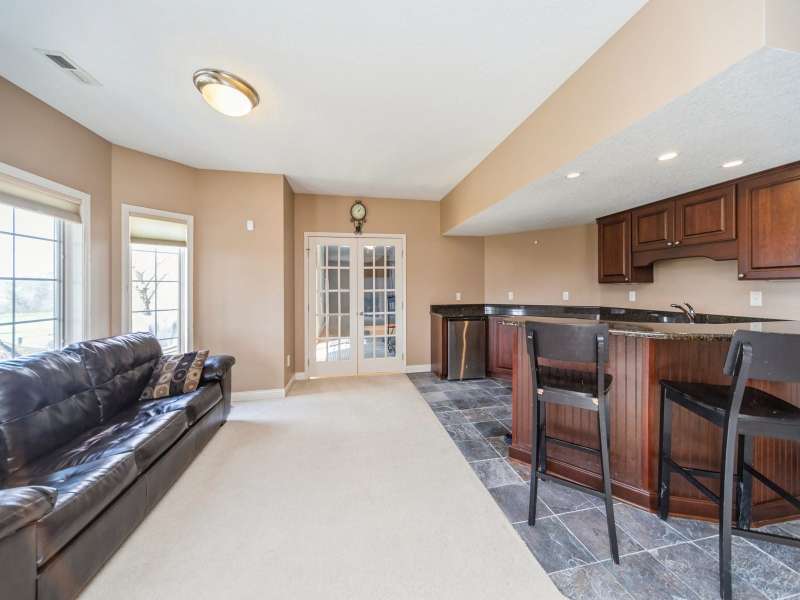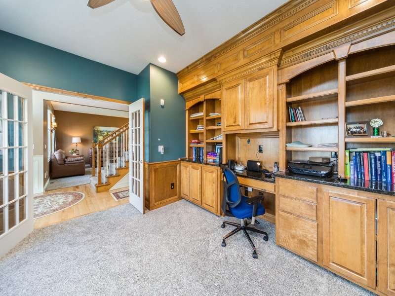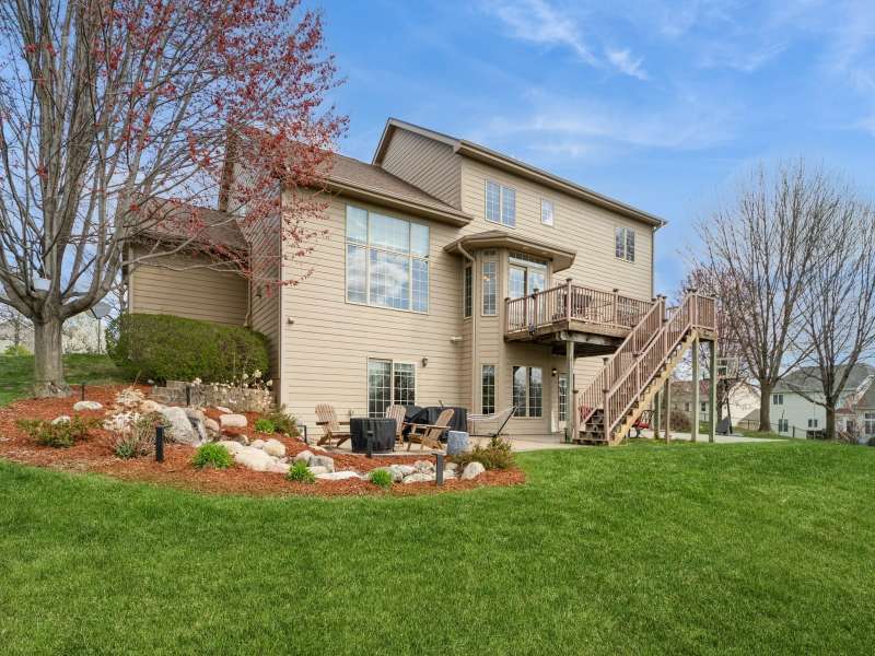 Beautiful home on a spacious 0.5-acre lot on Cul-de-sac backing up to Deer Ridge West Park. The main level features maple floors, and bright formal living and dining rooms. The kitchen offers granite counters, stainless steel appliances, a center island, and park views from the dining area. Step out onto the large composite deckperfect for morning coffee or entertaining. Enjoy the cozy family room with a fireplace, built-ins, and vaulted ceilings. There's also a main-floor office with built-ins and a laundry room with lockers. The primary suite includes tray ceilings, dual walk-in closets, a Jacuzzi tub, separate shower, and double vanity. Bedroom 2 has a private bath; Bedrooms 3 and 4 share a Jack & Jill bath. The walkout lower level, finished in 2008, includes a theater room, wet bar, play area, fitness room (or 5th bedroom). What's special is new carpet and fresh paint in June 2025. New Pella windows and two sliding doors have been ordered and will be installed soon! Extras include a security system, central vac, irrigation system, added water fall, and 3-car garage with epoxy floors. Located in the highly rated NW waukee high school district. Schedule your showing today!