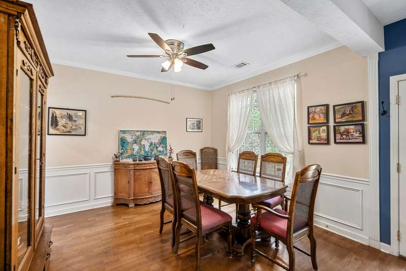 Welcome home to this stunning all-brick beauty featuring four bedrooms and three bathrooms, thoughtfully designed with timeless charm and modern comfort. Step through the elegant Palladian front door into an inviting open floor plan filled with natural light from oversized windows throughout. The formal dining room boasts classic wainscoting, while the spacious den offers a cozy fireplace, perfect for relaxing or entertaining. The kitchen and living areas flow seamlessly, creating a bright, airy atmosphere ideal for gatherings. The fourth bedroom serves as a huge bonus room with an additional dormer, offering flexible space for guests, a media room, or a home office. Enjoy outdoor living on the covered side porch or the back patio that overlooks the beautifully landscaped, private backyard. Neighborhood also features a community pool. This home combines elegance, function, and comfort—inside and out. A must-see property that's move-in ready and filled with light and character! Neighborhood covenants found at Southmeadowsaiken.com If important to buyer, please verify school zone, square footage, or any other MLS information.