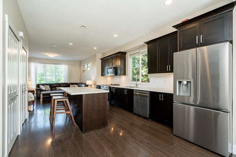 Welcome to Pier 16 Townhomes located in the heart of South Surrey close to shopping and White Rock beach. This family inspired neighbourhood boasts an end unit with large windows with ambient light that oversees the side yard with birds chirping in the trees. This private floor plan gives you 4 bedrooms and 3 baths that's spacious for your large family or even an inlaw suite. Recent updates of new appliances, new carpeting and recent painting makes this home move in ready! NEW PRICE! OPEN HOUSE SUNDAY Oct 26 2-4pm