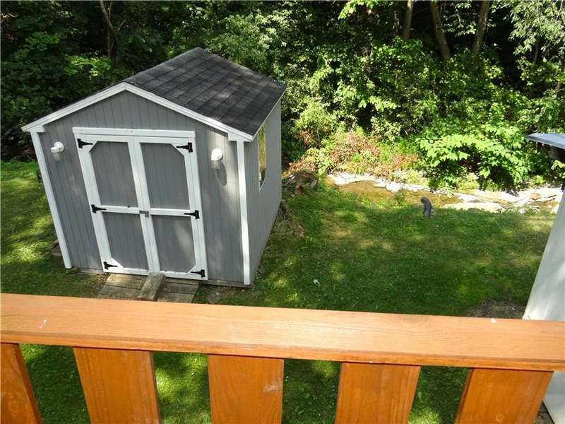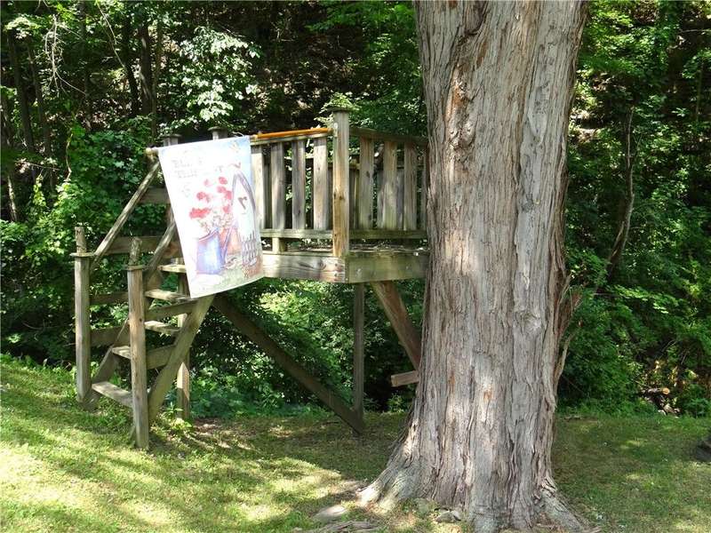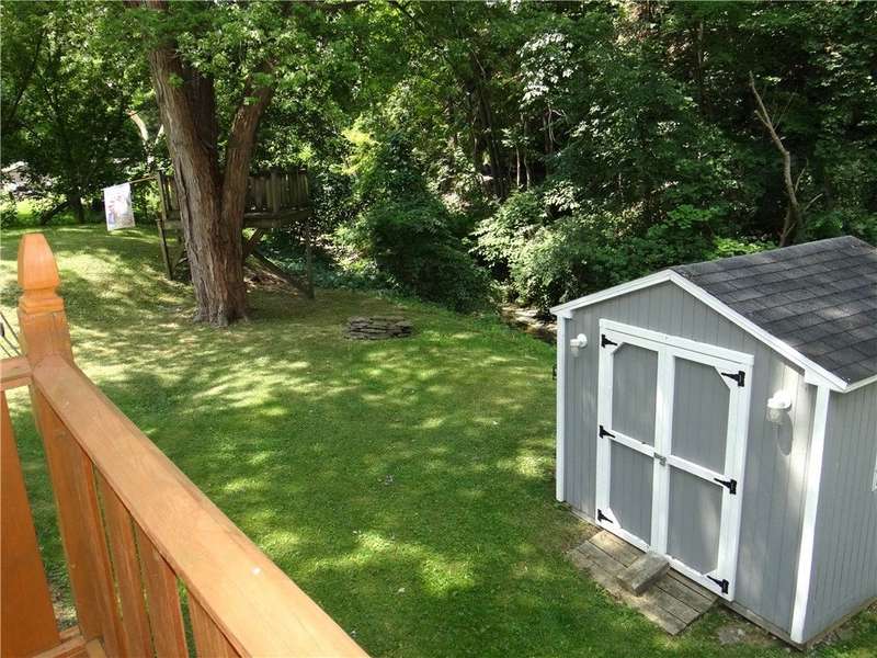 Enjoy the best of both worlds! Peaceful country feel just minutes from town in this charming 4-bedroom, 2-bath home sitting on a beautiful lot w/winding creek complete with fish. Step onto the wrap-around deck & take in the natural beauty of it all. Don't miss the amazing stone chimney, a true work of art, and be sure to look up to spot the boot, along with other surprises, tucked into its intricate design. Inside you'll find hardwood floors, some vinyl windows, nice bathrooms, and a large bright kitchen w/island and all appliances. The walk-out basement adds plenty of storage space & a new boiler system installed in 2014 keeps things efficient & comfortable. Nice shed, a whimsical treehouse, and plenty of room to enjoy the outdoors. If you are looking for space, charm, and a little bit of country tranquility without giving up convenience, this home welcomes you! Look, LOVE, Live!