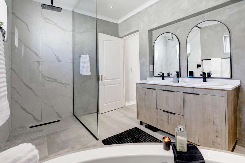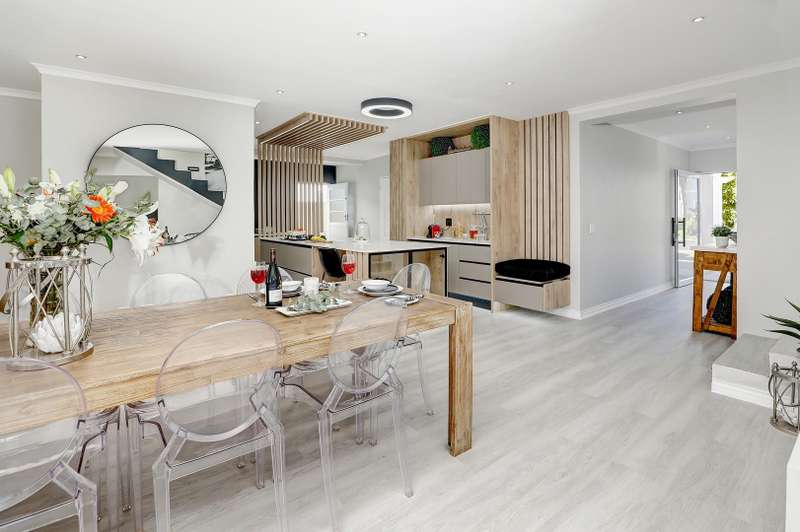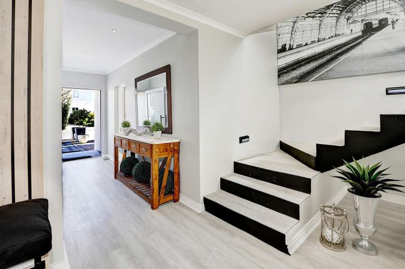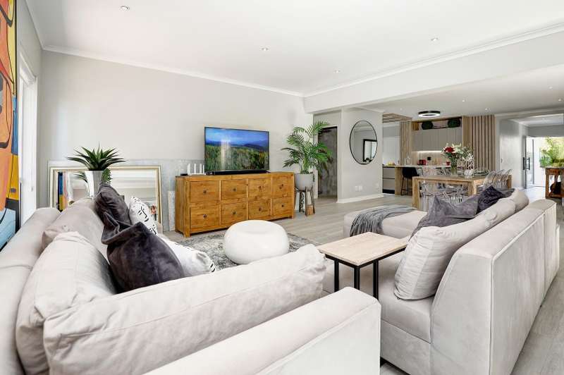EXCLUSIVE MANDATE From the moment you enter through the striking glass panelled front door, you are greeted by the elegance and sophistication of this breathtaking modern home. Designed with exceptional attention to detail and a focus on luxurious everyday living, it leaves a lasting impression, like something out of a Top Billing feature. Open, light filled interiors offer seamless flow between living, dining and entertainment spaces. A calming colour palette, sleek finishes and soft textures create an atmosphere of both style and tranquillity. Every detail has been thoughtfully curated for comfort and beauty, making it easy to move in and feel at home. At the heart of the home is a showpiece kitchen that blends functionality and style. It features German engineered appliances, gas hob with black glass, soft close cabinetry, hidden storage, pull out pantry cupboards, concealed plug points in the island, ambient lighting, a built in electronic charging drawer and a sophisticated coffee and wine bar. Adjacent to the kitchen is a little mudroom with a built in bench and shoe organiser, ideal for busy family life. The expansive open plan living area includes a lounge, dining zone and dedicated workspace, perfect for entertaining or everyday living. A built in indoor braai allows for year round hosting, while a stylish guest bathroom adds convenience. Just outside, a beautifully finished patio enhances the indoor outdoor lifestyle and is designed for low maintenance. All three spacious bedrooms have been designed as peaceful retreats. Each offers a full en suite bathroom with marble finishes, waterfall shower heads, suede textured feature walls and floor to ceiling frameless double thick glass shower panels. Bedrooms include block out blinds for restful nights and generous built in cupboards with a sleek, minimalist design. Throughout the home, new soundproof laminate flooring and underfloor heating provide warmth and comfort, while adjustable LED lighting helps set the perfect mood. Upstairs, the luxurious master suite includes another full en suite bathroom and thoughtful touches of elegance. Also on this level is a bright and stylish study, ideal for working from home, with soft zebra blinds allowing natural light and privacy. Tucked quietly on the same level is the cosy pyjama lounge, a perfect space to read, enjoy coffee or simply unwind. This area offers flexibility to be used as a fourth bedroom, TV room, hobby space or home gym and is already prepped for an indoor Jacuzzi. The low maintenance landscaped garden is neat and welcoming, with architect approved plans included for a splash pool or outdoor Jacuzzi. A fully app controlled inverter system ensures energy efficiency and peace of mind, while a newly installed geyser isolator adds an extra layer of safety. The double garage is beautifully tiled and includes water points for a potential laundry area, plus newly installed automated motors. In addition, three secure off street parking bays provide ample space for guests or additional family vehicles. Located in a 24 hour security estate with controlled access, a manned guard house, electric fencing and roaming guards, this home also offers an enviable lifestyle. Residents enjoy exclusive access to the golf course, a 20 percent discount at the clubhouse and private access to golf paths for evening walks, jogging or cycling after 6pm. Situated just 700 metres from Durbanville Preparatory School and with convenient access to main routes into Cape Town, this property delivers on privacy, convenience and prestige. This is not just a house. It is a dream home waiting for you to fall in love. Prepare to be inspired.
