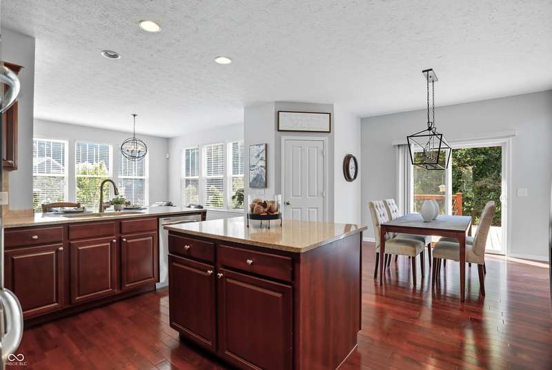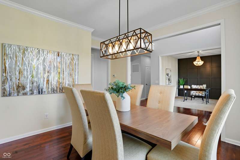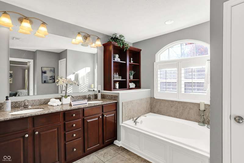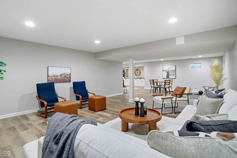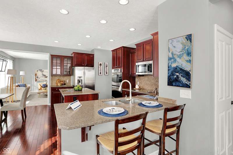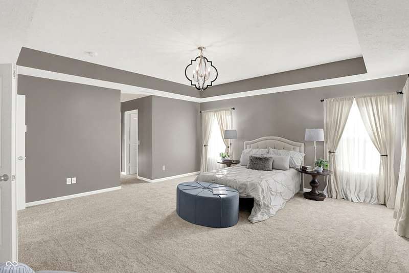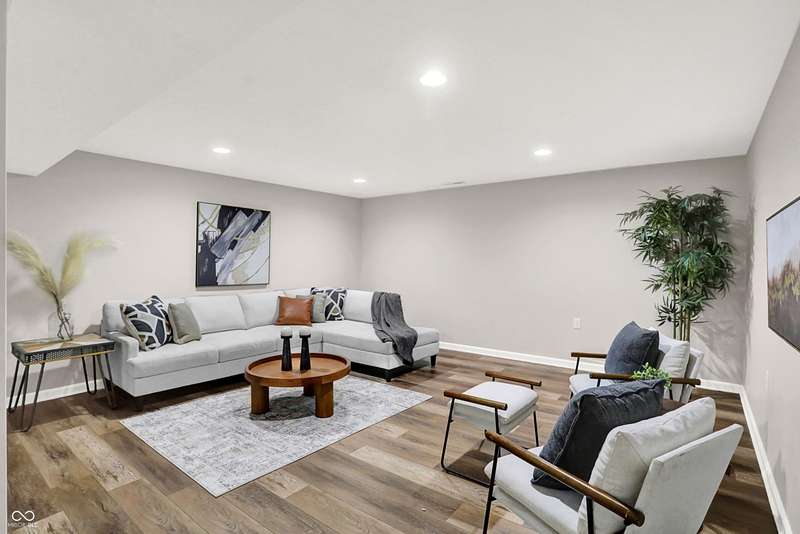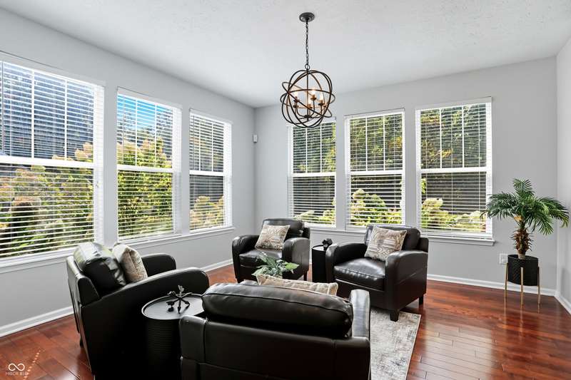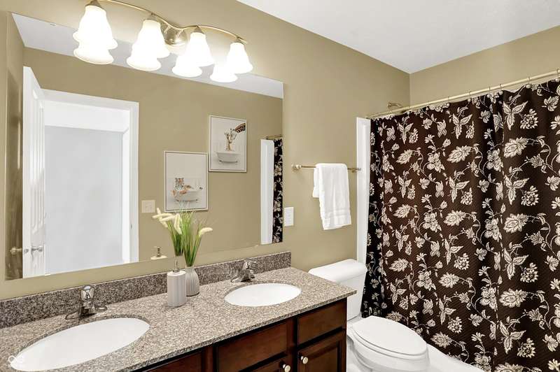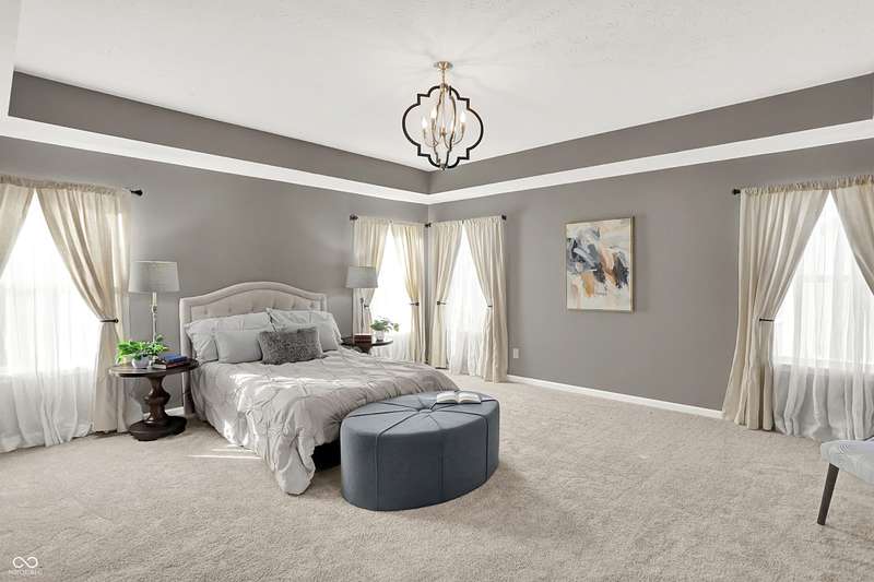Offered by its original owner in highly coveted Strongbow Gate. This stunning home is set on one of the largest, most private lots in the neighborhood, backed by a mature, non-buildable tree line. Unparalleled privacy and prime location. Immediately greeted with a brick-wrapped covered porch, lush landscaping, and a dramatic two-story foyer. Inside, natural light highlights hardwood floors, a custom (board and batten) accent wall, and designer finishes. Brand New Plush Carpets Installed throughout the whole house giving a fresh, clean, and sophisticated look. The gourmet kitchen is an entertainer's dream: expansive eat-in breakfast bar, large center island, high-end SS appliances, and abundant cabinetry. Seamless flow connects the kitchen to main living spaces and the expansive, refinished deck - which has the perfect backdrop for peaceful evenings or enjoying your morning coffee. The newly finished basement is equally impressive, featuring a wet bar, dedicated storage, and vast open space ready for recreation, fitness, or movie marathons. Retreat upstairs to the massive primary ensuite boasting his and hers walk-in closets and a spa-inspired bathroom. The convenient upper-level laundry room makes daily life so much easier. Key Amenities: EV charger, gas fireplace, well-designed layout, ample storage, and regularly serviced H.E. HVAC. Minutes from Geist Reservoir, Geist Water Park, Downtown Fortville, and easy access to Fishers Yard dining and shopping. This is a rare combination of location, function, and designed for those who value both flow and function! Ask your agent about the Bee Camp Creek Trail!