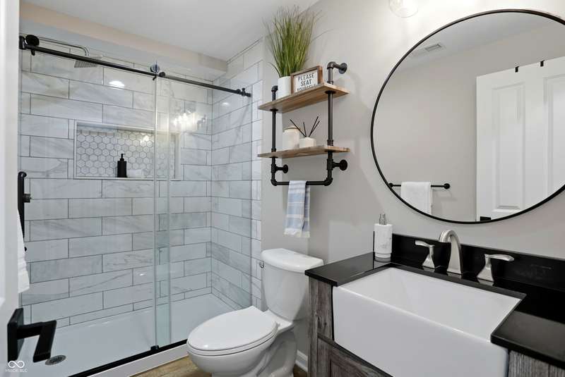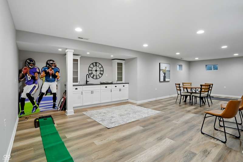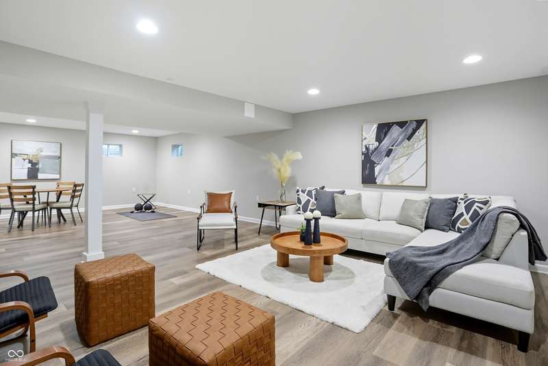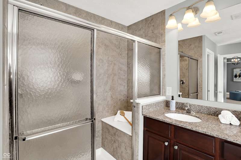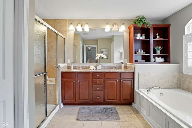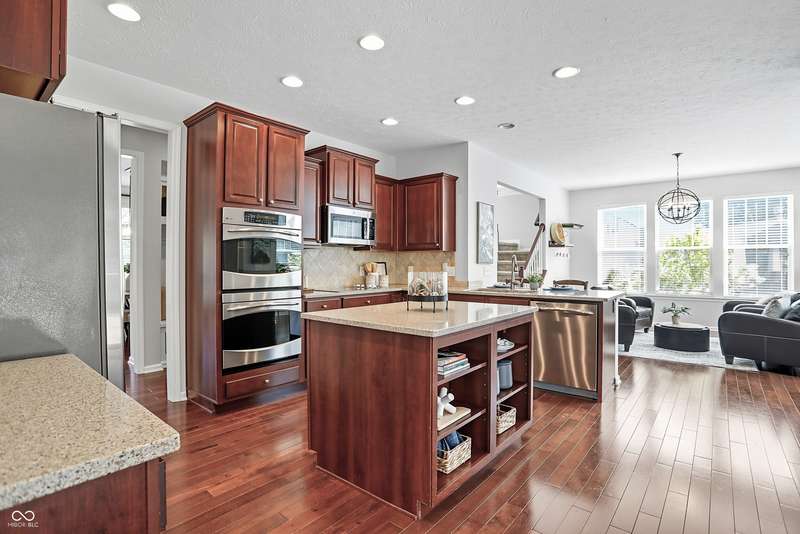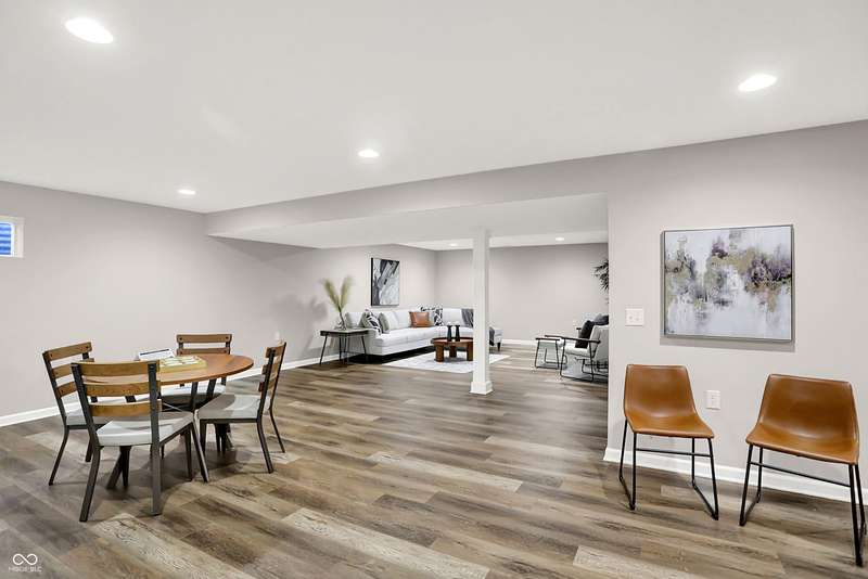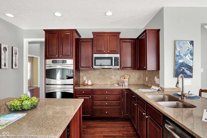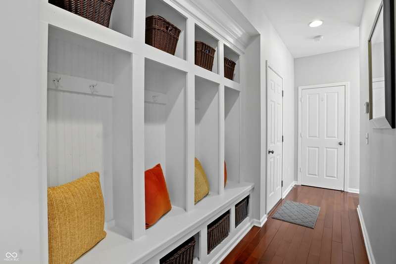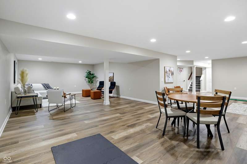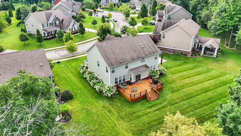 Offered by its original owner in highly coveted Strongbow Gate. This stunning home is set on one of the largest, most private lots in the neighborhood, backed by a mature, non-buildable tree line. Unparalleled privacy and prime location. Immediately greeted with a brick-wrapped covered porch, lush landscaping, and a dramatic two-story foyer. Inside, natural light highlights hardwood floors, a custom (board and batten) accent wall, and designer finishes. Brand New Plush Carpets Installed throughout the whole house giving a fresh, clean, and sophisticated look. The gourmet kitchen is an entertainer's dream: expansive eat-in breakfast bar, large center island, high-end SS appliances, and abundant cabinetry. Seamless flow connects the kitchen to main living spaces and the expansive, refinished deck - which has the perfect backdrop for peaceful evenings or enjoying your morning coffee. The newly finished basement is equally impressive, featuring a wet bar, dedicated storage, and vast open space ready for recreation, fitness, or movie marathons. Retreat upstairs to the massive primary ensuite boasting his and hers walk-in closets and a spa-inspired bathroom. The convenient upper-level laundry room makes daily life so much easier. Key Amenities: EV charger, gas fireplace, well-designed layout, ample storage, and regularly serviced H.E. HVAC. Minutes from Geist Reservoir, Geist Water Park, Downtown Fortville, and easy access to Fishers Yard dining and shopping. This is a rare combination of location, function, and designed for those who value both flow and function! Ask your agent about the Bee Camp Creek Trail!