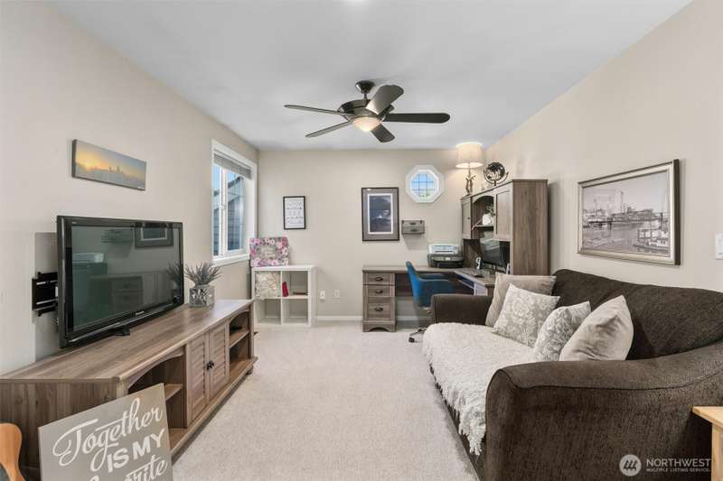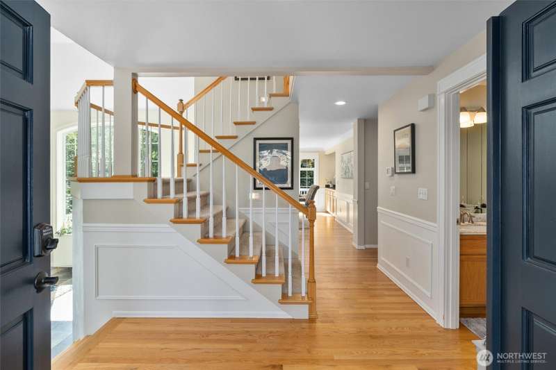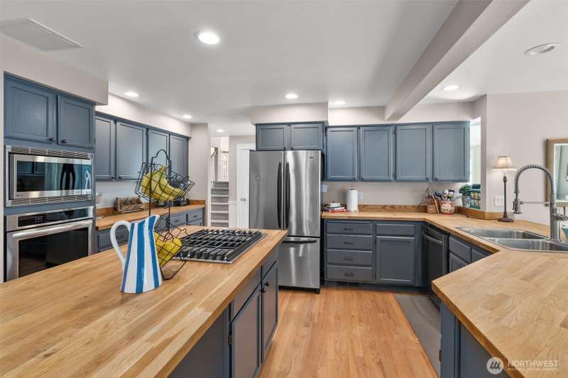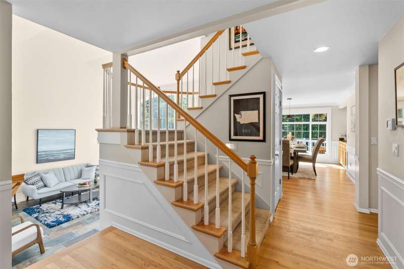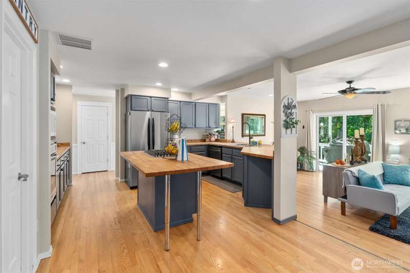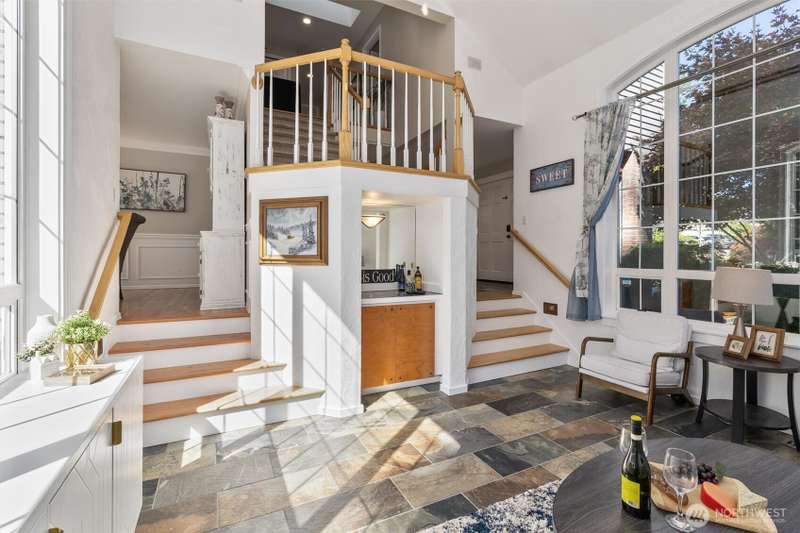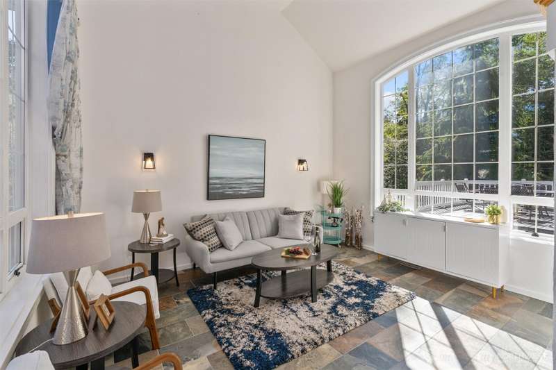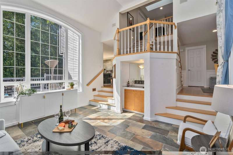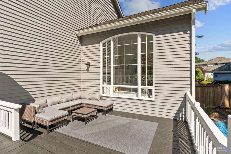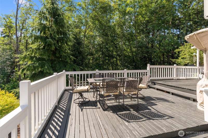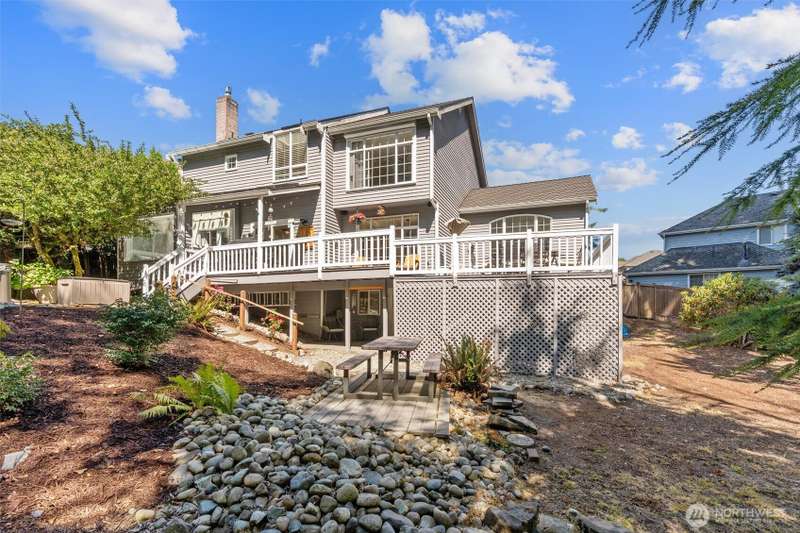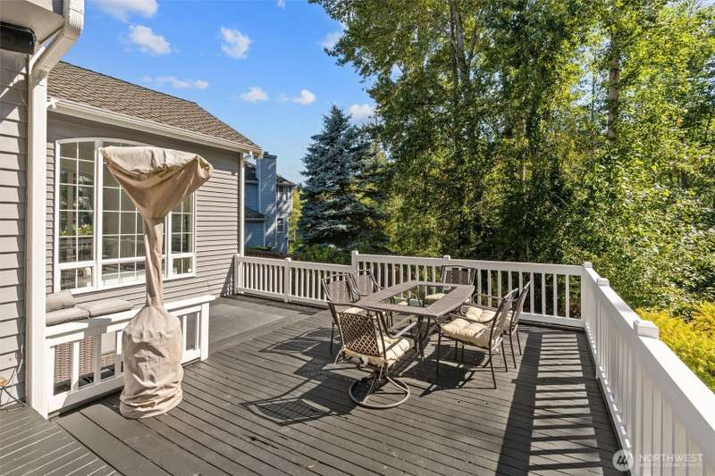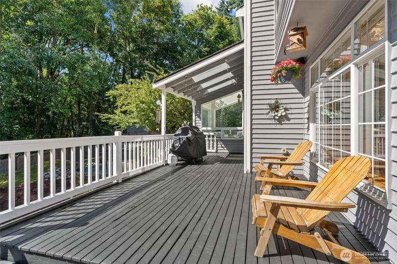 Nestled in the desirable Stone Brook neighborhood and backing to a greenbelt, this impeccably maintained, 4 bedroom, 2.5 bath home is full of surprises! Soaring ceilings, a chef’s kitchen with stainless appliances, a spacious primary suite with flex room. A massive, wrap-around, multi-level deck—perfect for entertaining, relaxing, or soaking in nature. Cozy enclosed sunroom with greenbelt views, plus a daylight basement perfect for a workspace/craft room. Great layout, unique spaces, and views from nearly every room!