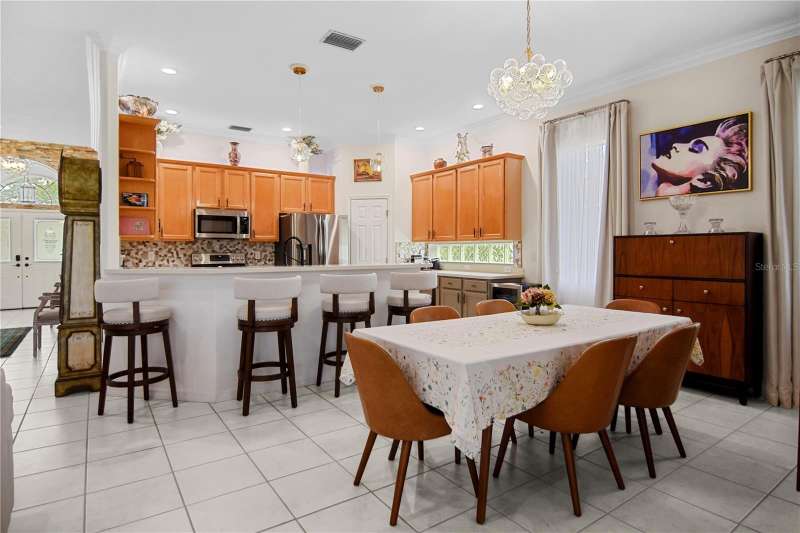 Welcome to your private oasis in the heart of Mote Ranch, one of Bradenton’s most desirable and serene communities. Backing to a lush nature preserve with no rear neighbors, this beautifully updated home offers unmatched privacy, tranquil water views, and over $66,000 in thoughtful improvements. From the moment you arrive, you’ll feel the calm of the setting, surrounded by tropical landscaping and daily sightings of Florida’s vibrant wildlife, including sandhill cranes, spoonbills, herons, turtles, and more. Step inside to find a light-filled, open layout with soaring ceilings, newly installed luxury vinyl plank flooring in the guest rooms and office, fresh Sherwin-Williams Cashmere interior paint, and custom draperies throughout. The kitchen is a standout with painted lower cabinets, a new Kraus single-bowl granite sink, new double oven stove, microwave, dishwasher, garbage disposal, and refinished wood cabinetry, ideal for both casual meals and entertaining. Recessed dimmable LED lighting, new chandeliers, ceiling fans, dimmer switches, and upgraded GFI outlets throughout the home add comfort and efficiency. Both guest bathrooms have new eco-flush toilets and upgraded exhaust fans, and the primary suite offers a peaceful retreat with lanai access, dual vanities, a walk-in shower, and soaking tub. Enjoy complete peace of mind with a newly installed ADT security system you can monitor from your phone, plus a keypad lock on the front door and updated electric panel. Outside, the covered lanai invites you to relax with a beverage in hand and watch the sun set over your private pool and spa. The inviting pool includes new valves and a new heater and cooler system, perfect for year-round enjoyment. A new sprinkler system and fresh landscaping complete the exterior upgrades. Mote Ranch offers low HOA dues and excellent amenities including a community pool, kayak launch, dock, fishing area, and miles of sidewalks ideal for morning and evening strolls. The location is unbeatable, just minutes from University Town Center Mall, Whole Foods, Trader Joe’s, The Fresh Market, and more than 80 restaurants and shops. Lakewood Ranch Medical Center, one of the area’s top-rated hospitals, is only 5 miles away, and you’re just a 30-minute drive to world-class Gulf beaches. Plus, the home is not in a flood zone, which helps keep insurance costs lower. This is more than just a home—it’s a lifestyle. Peaceful, private, and perfectly located, this move-in ready retreat is waiting for you. Call today to schedule your private showing.