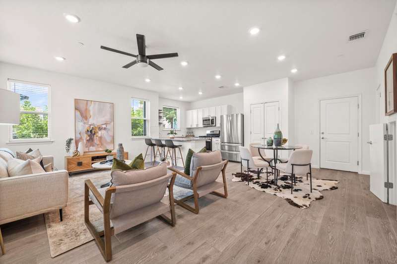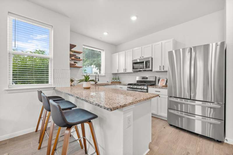 Welcome to this beautifully maintained 3-bedroom, 2.5-bath condo in the vibrant Goodnight Ranch community of southeast Austin. Built in 2020 by Homes by AVI, this home feels fresh and move-in ready with new carpet throughout, a full interior repaint, and updated fixtures that elevate the modern design.