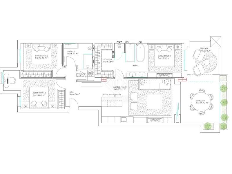 Welcome to this charming property that perfectly combines comfort, style, and practicality. Upon entering, you're greeted by a spacious hallway that offers easy access to all the main rooms and creates a welcoming first impression. The open-plan living and dining area is ideal for entertaining or enjoying family time, with large windows that let in plenty of natural light and offer lovely views of the terrace. Next to this area is a modern kitchen, equipped with high-quality appliances and ample counter space, making it perfect for both cooking and socializing. A standout feature of this home is the spacious terrace accessible from the living area. This outdoor space is great for dining outside, hosting barbecues, or simply relaxing while enjoying the garden views. The property has three well-sized bedrooms: - The master bedroom, provides a quiet retreat. It includes a private en-suite bathroom with modern fixtures and built-in wardrobes for plenty of storage. - The second bedroom is spacious and well-lit, ideal for guests or children, and has easy access to the second bathroom in the hallway. - The third bedroom is similar in size and layout to the second, offering flexibility for use as a guest room, children's room, or home office. There are two modern bathrooms, one en-suite in the master bedroom and another accessible from the hallway, both designed with contemporary finishes and fully equipped. Additionally, there's a utility room for laundry and extra storage, helping to keep the living areas tidy and clutter-free. This property is a great blend of comfort and functionality, with spacious rooms, modern amenities, and an inviting terrace. It’s perfect for families or anyone looking for a lovely home.