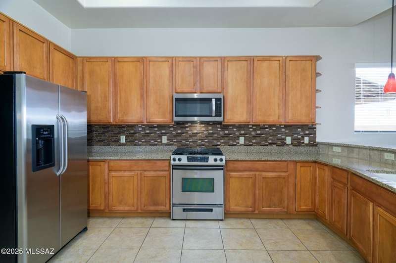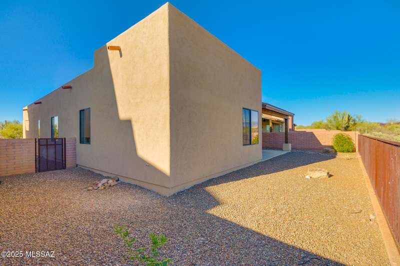 Located in the gated community of Skyranch Estates this exceptional 3br/2ba with Den (could be 4th br, as it has closet) features granite counters and ceramic tile flooring in all areas except bedrooms. Bright, open kitchen with stainless steel appliances, breakfast area & huge walk-in pantry. Great Room boasts stone covered gas fireplace and high, open design. Owner's Suite features abundant space, while bath has separate vanities, jacuzzi tub, walk in shower and larger closet. Covered patio in the very private backyard, which backs up to natural preserve. Split bedroom floorplan completes this home with designer touches throughout. Just completed interior/exterior repaint and roof coating. A definite must see!