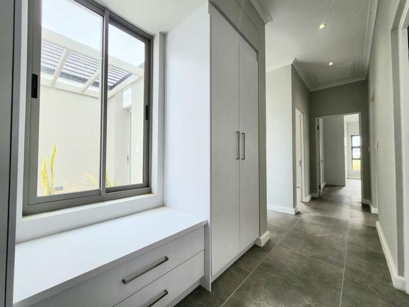 Brand New North Facing Home All Costs are inclusive of your purchase Chardon Village is a new, upmarket development in Langebaan Country Estate, a community known for its friendly atmosphere. Located on the hills next to the clubhouse, this development offers a private and luxurious living experience. Chardon Village combines modern design with practicality, creating an exceptional lifestyle. This north-facing property has stunning views of a natural greenbelt where wildlife is visible, adding to the peaceful environment that is perfect for daily life. Welcome to this beautiful home, where elegance is evident throughout. The large open-plan living spaces create a warm and inviting atmosphere. The interior features modern design with high-quality finishes, stylish fixtures, and custom details. The open layout flows easily into the modern kitchen, which includes a separate scullery. You can step out through the sliding doors to a cozy braai patio, great for entertaining or relaxing. The master suite is a comfortable retreat among the three bedrooms. It includes a luxurious ensuite bathroom with heated towel rails and plenty of closet space. The other two bedrooms are spacious and share a full family bathroom. For convenience and safety, a double automated garage connects directly to the house, making life easier and more secure. Don't miss out on this sought-after lifestyle opportunity. No transfer duty is required, so act now and secure your home in Langebaan Country Estate. Langebaan Golf and Country Estate offers a range of facilities including: Gary Player Design 18 hole golf course Driving range Cycling and running routes Tennis, Netball and Basketball Bowls Swimming pools Gym Zest Spa Sodato coffee shop Horizon Restaurant And so much more Do not miss the opportunity to be a part of the LCE family Contact Mark, your resident agent, to view these properties and receive an informative tour of the lifestyle and leisure Country Estate