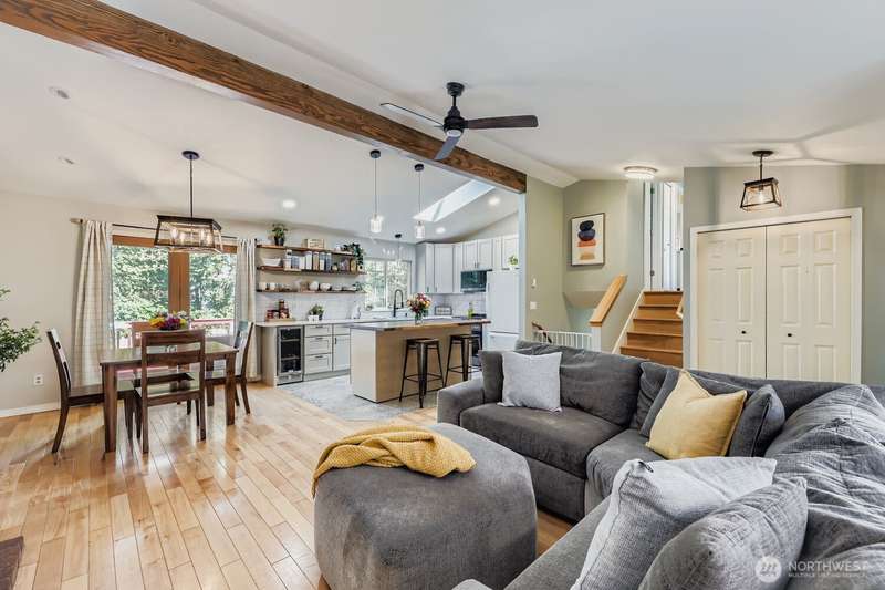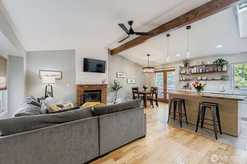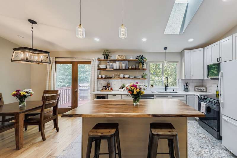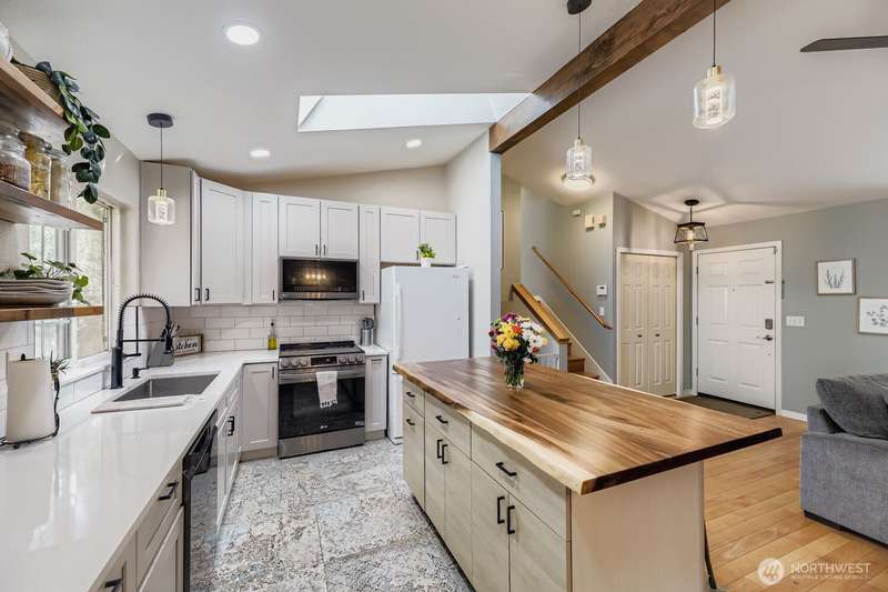 Beautifully updated tri-level home! Step inside to a stunning updated open kitchen featuring quartz counters, stainless appliances, custom cabinetry, pendant lighting, beverage fridge, & a show-stopping live-edge butcher block island. Gorgeous newer flooring and fresh paint highlight the home's bright, modern style. Upstairs, 3 spacious bedrooms including updated main bath w/vanity, tile surround & rain shower. Serene primary ensuite w/walk-in shower. Lower level has a versatile rec room, perfect for crafts, or home office. Enjoy outdoor living with a private fully fenced yard, deck off the kitchen, patio, outbuildings--all complemented by a 2-car attached garage. All in an excellent location close to highways and everything you need!