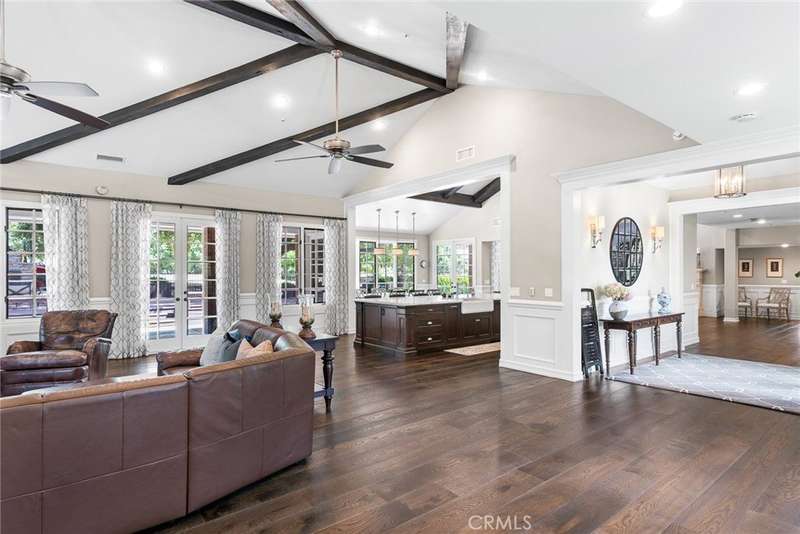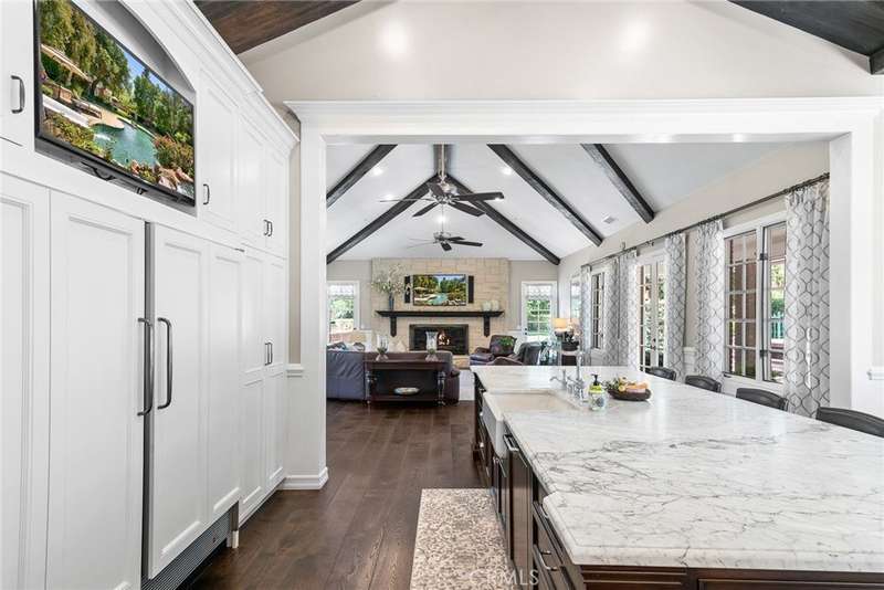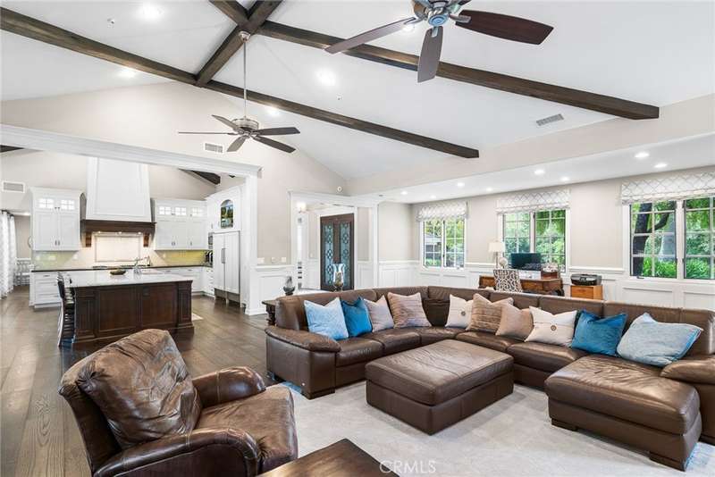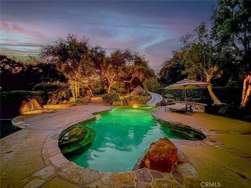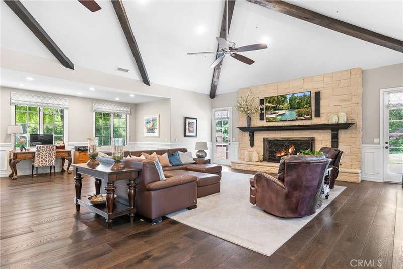 Welcome to 5135 Island Forest Place — a private sanctuary gracefully positioned along the serene sixth fairway of the esteemed North Ranch Country Club. This contemporary estate is a testament to architectural elegance and thoughtful design, encompassing over 5,100 square feet of living space. With five generously appointed bedrooms and five bathrooms, the home offers abundant room for both grand entertaining and quiet retreat. Two main-level bedrooms feature ensuite baths, affording exceptional privacy and comfort for family members or discerning guests. Set on over 260 feet of prime golf course frontage, the residence enjoys uninterrupted views of rolling fairways framed by mature oaks providing both visual splendor and a natural sense of seclusion. The expansive great room, crowned by soaring 16-foot ceilings, floods with natural light and offers an ideal setting for sophisticated gatherings, fireside reading, or peaceful reflection. Step outside to a resort-inspired backyard, where a shimmering pool and spa are embraced by lush landscaping, creating an intimate outdoor haven. Whether entertaining under the stars or savoring a quiet morning by the water, this space is designed to restore and inspire. Located on a tranquil cul-de-sac within the exclusive gated enclave of Island Forest—comprised of just 14 distinguished residences—this home offers the rare combination of security, privacy, and community. Low HOA dues add to the appeal of this elite setting. Enhancing the property’s value and lifestyle offering, a significant renovation of the North Ranch Country Club’s renowned golf courses is currently underway, promising an elevated playing experience and world-class amenities upon completion. Unlike other homes in the area, 5135 Island Forest Place is thoughtfully situated away from through-traffic, ensuring a sense of peace that is both rare and cherished, truly evoking the feel of a personal island retreat. Here, luxury meets tranquility in one of North Ranch’s most coveted addresses.