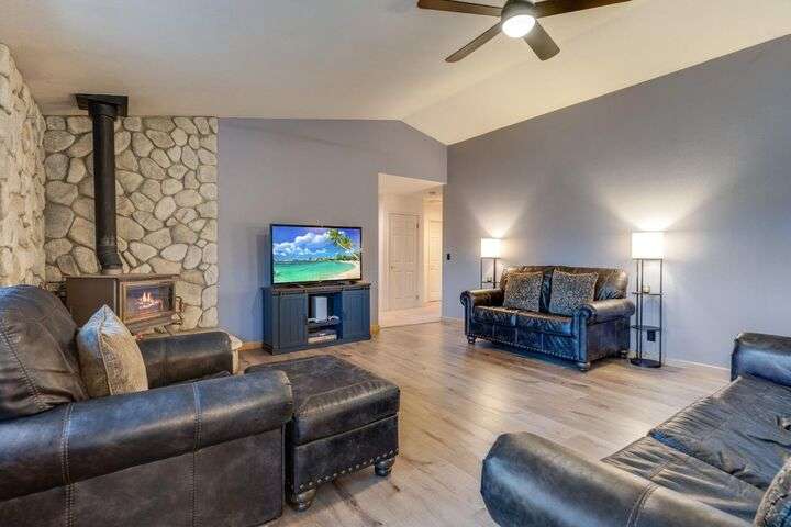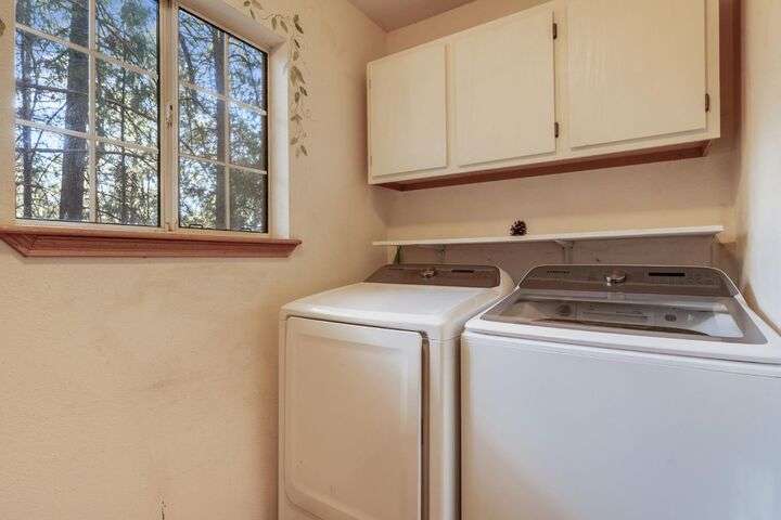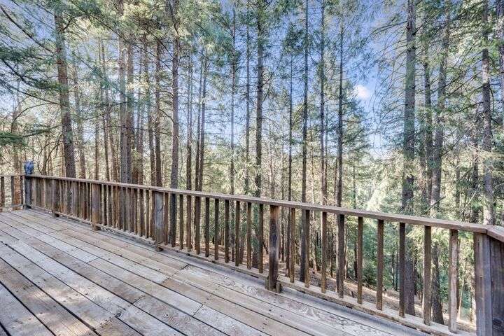 Welcome to a life of peace & pine-scented serenity! This private retreat nestled in the coveted Sierra Springs Community is just 3.5 miles from the shimmering waters of Sly Park Lake, where boating, kayaking, swimming, hiking, biking, and fishing await your adventurous spirit. This charming 3-4 bedroom, 2-bath, approx. 1,900 Sq. Ft. home with attached 2-car garage sits on nearly 3 peaceful, tree-lined acres, blending modern comfort with serene mountain living. Inside, find fresh paint, stylish new fixtures, updated flooring, and a spacious kitchen with granite countertops, perfect for daily living and entertaining. Enjoy morning coffee & sunrises or wine down as you take in the evening sunsets from your private back deck, with expansive wooded views that offer privacy and a postcard-worthy backdrop. Downstairs, a fully finished basement (not included in the square footage) offers endless potential - think income-generating rental, in-laws quarters, rec room, bunk room, or hobby space. All within a desirable HOA featuring two pools, tennis courts, half basketball/pickleball courts, and a private clubhouse offering social and recreational amenities just moments away. Whether it's your forever home, a seasonal getaway, or an investment, this turnkey property delivers it all!