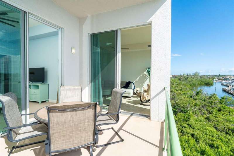 TOP FLOOR, SPECTACULAR VIEWS, BOAT SLIP #30, ONE MILE TO THE BEACH - Enjoy the Gulf Coast lifestyle at Redfish Key Villas with easy access to the beaches of Manasota Key, Palm Island and Boca Grande. Experience world class fishing, boating, golfing and dining in the heart of Englewood and surrounding villages of Venice and Boca Grande. There is nothing quite like Redfish Key Villas with its unique setting at the water’s edge, superior construction, modern design, and upscale residences. This top floor, open-concept, split plan residence delivers a luxury lifestyle like no other. Prepare to be wowed by twelve-foot ceilings and incredible views of Lemon Bay and Redfish Cove. Ten-foot, hurricane impact resistant windows and sliding glass doors allow natural light to pour in. The interior finishes include tile flooring in the main living areas, custom wood cabinetry with granite tops throughout, and luxury stainless appliances. Relax on your private balcony and enjoy endless views of osprey, dolphin, and manatee. Lounge by the heated pool or walk to local beaches, shops and restaurants. This stunning residence is ready for immediate enjoyment and includes assigned boat slip #30. Do not miss this opportunity!
