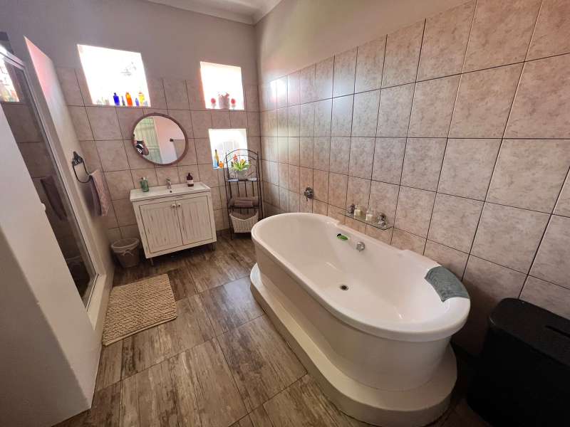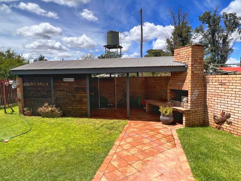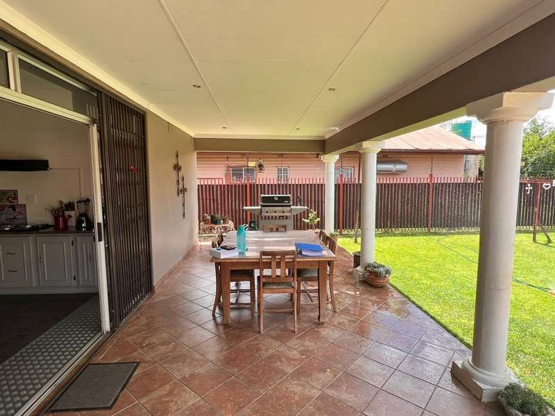 This lovely property is not to be missed. It consist of two erven. This property has it's own borehole and a lovely garden. There is a BIG living room with an air conditioner and dining room which will ensure hours of family time. The kitchen is fitted with cupboards and have a pantry to keep all your kitchen necessities. Next to the kitchen is a separate laundry. There is three spacious bedrooms with cupboards. The main bedroom is on-suite with an air conditioner. Outside you will find a patio with a stoep and a braai. With regard to security, the is electric fencing, burglar proof and security gates This property is not to be missed!!!!