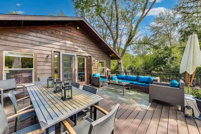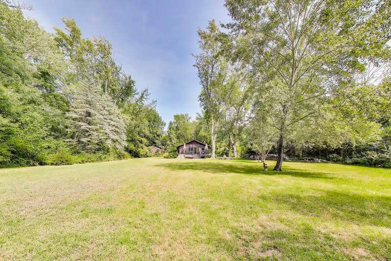 Wrapped in the warmth of hand-hewn logs, this enchanting cabin sits on just over an acre at the corner of Marquette Woods and Lakewood-minutes from the sugar-sand beaches of Lake Michigan. Towering trees, colorful gardens, and a tranquil pond create a private, storybook setting. A large new deck invites summer gatherings, while the welcoming front porch is perfect for quiet mornings. Inside, rustic charm meets comfort, and nearby Tosi's Restaurant and the famed Bit of Swiss Bakery are close at hand. With a strong rental income history, this is more than a home-it's a retreat, an investment, and a place where every season writes its own story.