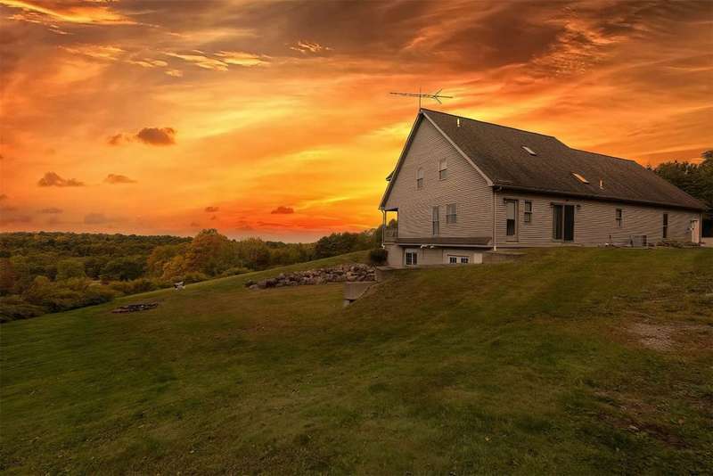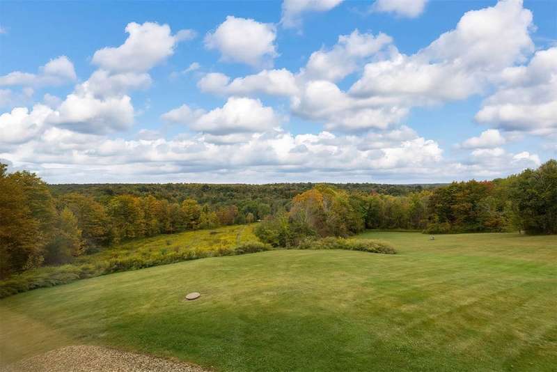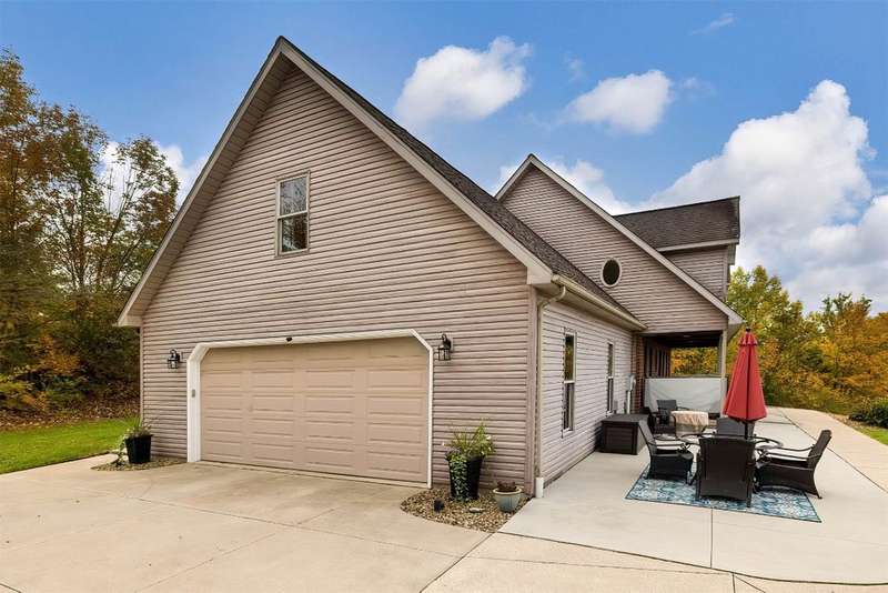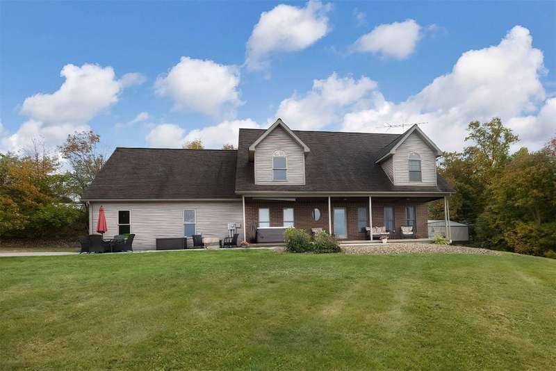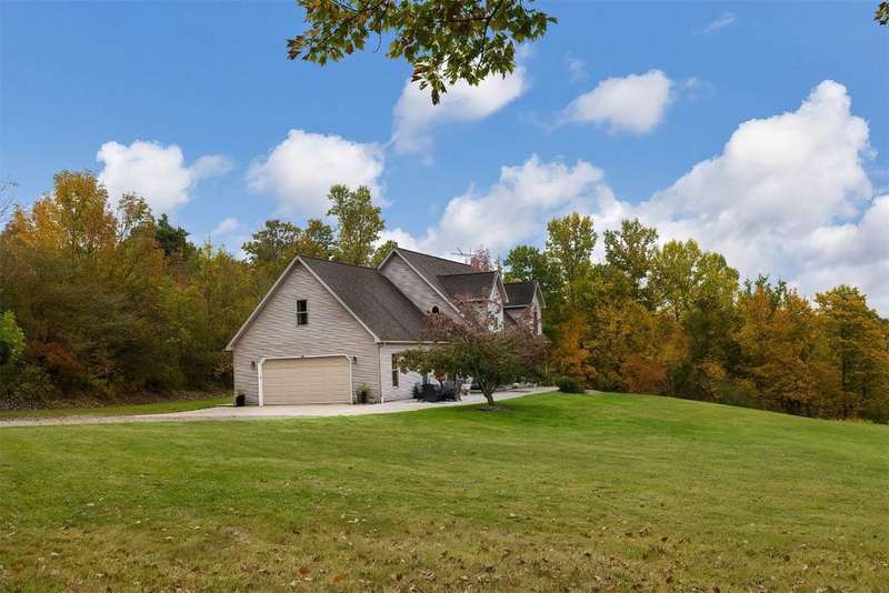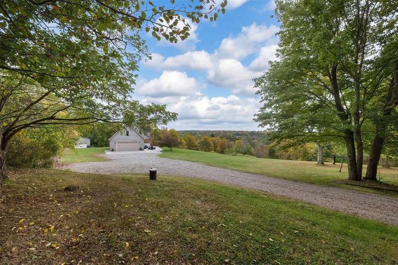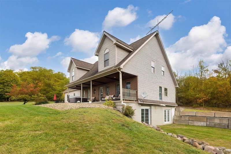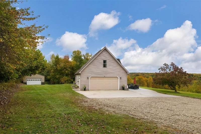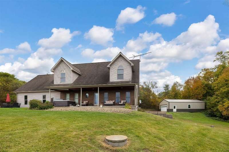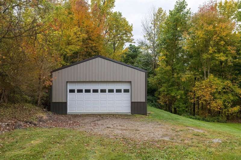 Almost 10 acres and the home sits on the hill side with a spectacular view. Come on and see the open floor plan. Primary bed and bath with a soaking tub are on the first floor. Throw a load of laundry in while working in the office/spare bedroom or use the half bath all on the first floor. Now up the stairs to the second floor where you can really see the beautiful tongue and groove cathedral ceilings. Travel across the walkway to 2rd bedroom and a spacious bath. Then back across the walkway to the 3rd bedroom and a huge bonus room. The view from any of the rooms in the house are amazing. The lower level is plumbed and ready to be finished. Walk out through one of the French/sliding to the outside and over to the pole barn where you can store all your toys. The porch on the front of the house has the best view and even enjoy the hot tub in the evening. There is a well but, this home has public water. Secondary access off of Edinboro Rd/99. (Future driveway)