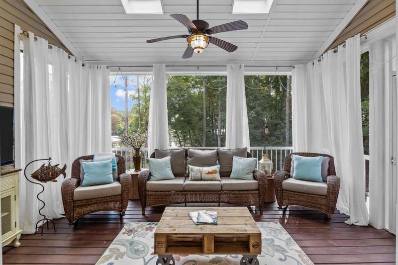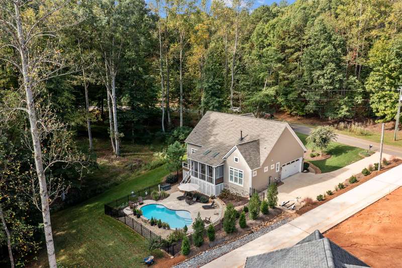 Leave the city behind and discover your peaceful escape in this immaculate 3 bedroom, 3 bath home. Graced by nature's backdrop and the beauty of Lake Norman, this custom-built home features vaulted ceilings and large windows that frame a view of the inground pool with a charming waterfall feature. Imagine yourself relaxing on the back deck or lounging by the pool enjoying the stunning natural landscape and view of the lake. There is space along the backyard shoreline to launch a kayak and float your cares away. Inside, the home offers elegant charm, with a cozy fireplace in the great room, a lovely main level primary suite, as well as a main level guest bedroom and full bath. Off of the welcoming foyer, you will also find a private office. The acre lot offers a blank canvas for a custom garden or perhaps additional outdoor entertaining space. This home is more than just a place to live; it's a quiet promise of a more tranquil life. Come visit today.