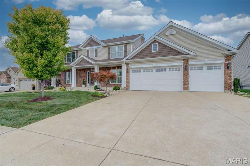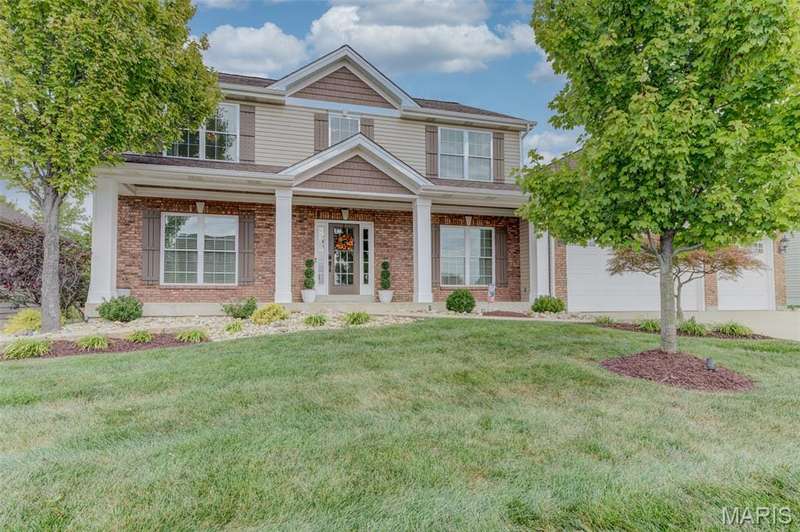 Over 3000 sq ft of living space including Lower Level, Located in the desirable North Point High School & 300 yds from Wabash Elem. A stunning 2-sty. in a prestigious Wentzville neighborhood, offers timeless luxury and stunning upgrades! As you step in you will find Hickory Wood Floors Gleaming throughout this home, Arched doorways & Towards the back of the house your custom designed Kitchen/Breakfast Nook, S.S appliances, Granite counter tops, 42 Cabinets. Step out to the 20 X 29 Custom Built Covered Patio w/ Wood Burning Stone Fireplace, Stamped concrete, Cathedral Tongue and Grove wood w/ceiling fan & heater for the chilly evenings. 2nd bar-b-q patio for you & your guest to enjoy the outdoors. Fenced & irrigation sys. Moving upstairs is the large loft, 4 bedrooms. The stunning owners suite for relaxation + the massive walk in closet, soaking tub, custom shower, w/separate adult high double vanities make this a one of a kind retreat! Three car garage will envied by all with the double side 29ft. deep. Lower Level is a dream come true for child's play w/playroom, family rm, and sitting area. Newer Roof, gutters & downspouts, siding, garage doors, front windows. Located in a desirable Stonemoor Subdivision w/a community pool, Basketball St.& Elementary School within Sub. Newer Wentzville (North Point) schools close by. Don't miss the all in one versatile and inviting property! Open House Sunday November 9, 12 - 2 P.M