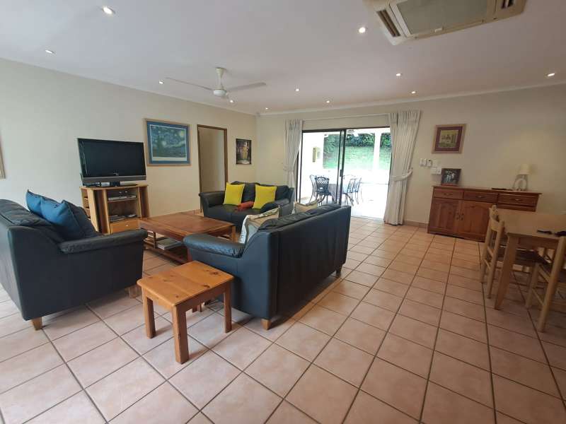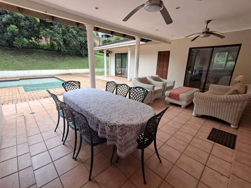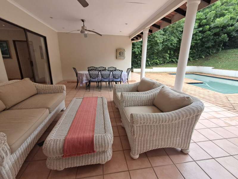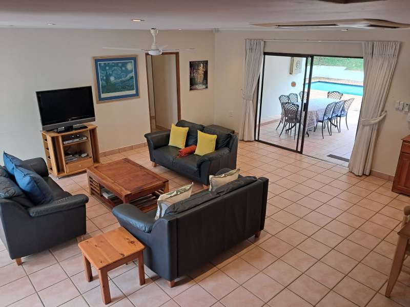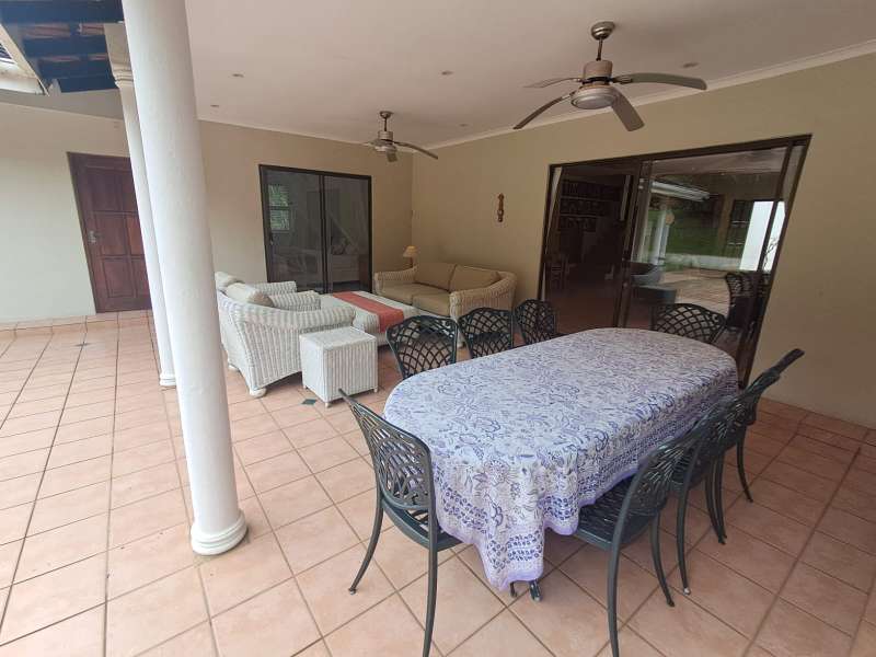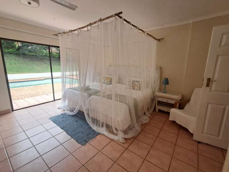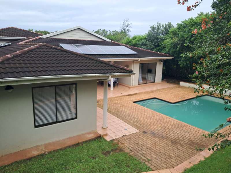 This fantastic family home is ideally located just a short walk from the gorgeous beaches and rock pools of Zinkwazi. The living area, dining room and kitchen are on one level. The kitchen is spacious and has a separate scullery. The living area leads out onto a spacious undercover entertainment patio, perfect for family gatherings. A few stairs lead up to the master bedroom which features a full bathroom as well as an added space that could be used as an office. The master bedroom also leads out on to a private balcony with lovely views. Three additional bedrooms are located off the main living area. Two of the bedrooms share a bathroom and have sliding doors that lead out onto the pool area. All the bedrooms are air-conditioned. There is also a private one bedroom flatlet, with its own entrance. Extra features of this home include a solar and inverter system, a complete security setup with an alarm system, CCTV, electric fencing, automated gates, and garage. Take advantage of the pristine beaches and lagoon that Zinkwazi has to offer whilst still enjoying peaceful tranquillity. The adjoining plot next to the home is also available to purchase. The plot is level and fenced. Don’t miss out on an opportunity to own a gorgeous coastal home in a sought after area on the KZN North Coast. Call now to arrange a viewing!