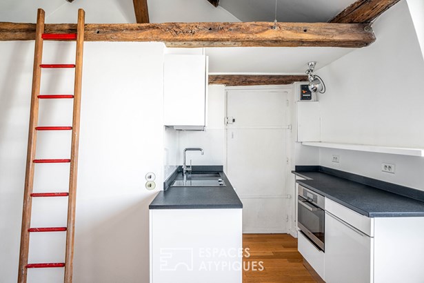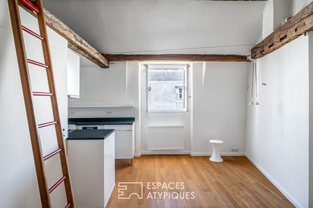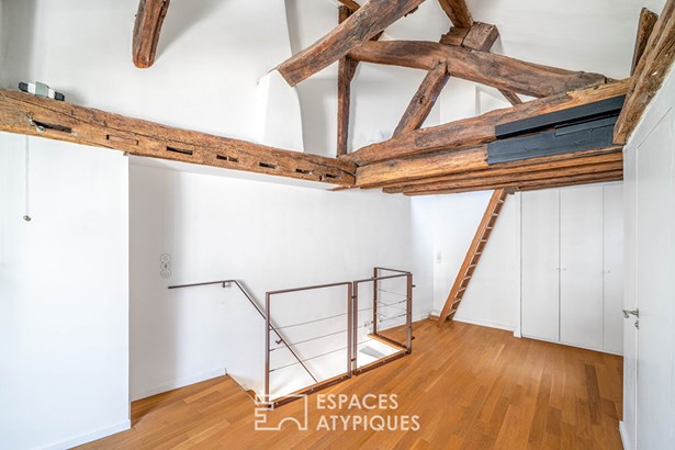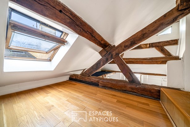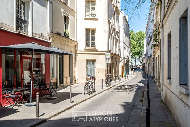 Located in the heart of the Quartier Latin, tucked away on a quiet, discreet street with direct access to the Seine, this unique duplex apartment of 69.61 m2 (58.11 m2 Carrez law) is set on the 3rd, 4th, and top floors of a charming period building. This rare property instantly captivates with its character, exceptional volumes, and prime location.