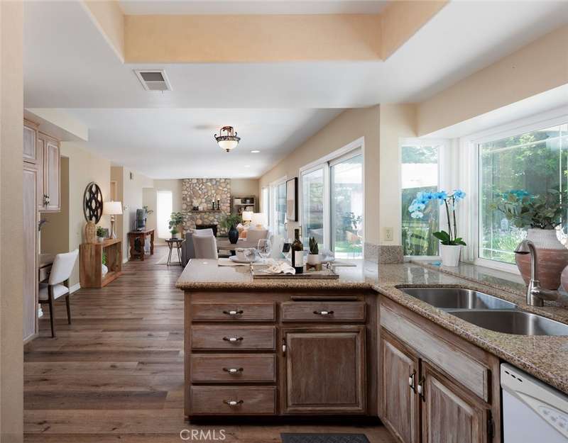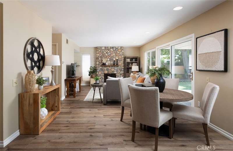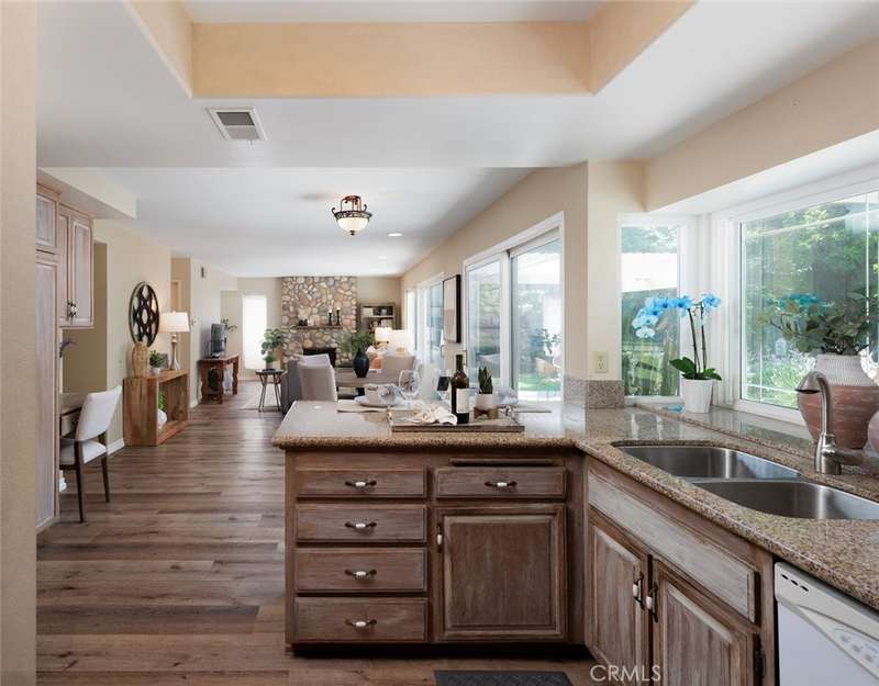 MABURY RANCH CHARMER | PRIVATE BACKYARD RETREAT | CORNER LOT ON SINGLE-LOADED STREET | UPDATED INTERIOR FINISHES | Welcome to 6049 E Mabury Avenue, a beautifully cared-for two-story home tucked into the highly sought-after Mabury Ranch community of Orange. Known for its wide, tree-lined streets, community events, and peaceful atmosphere, Mabury Ranch continues to be one of North Orange County's most desirable places to call home, and this property is your perfect opportunity to join it. With charming curb appeal and a warm, welcoming interior, this 4-bedroom, 3-bathroom home offers a beautiful living space with tasteful updates throughout. Upon entry, you're greeted by vaulted ceilings and a light-filled living room that seamlessly flows into a formal dining space. Wide-plank flooring, neutral paint tones, and updated lighting provide a fresh, move-in-ready feel while still allowing space for your personal touch. At the heart of the home sits a spacious kitchen with granite countertops, bar seating, and a view out to the backyard. It opens to a cozy family room with a stone fireplace and built-in cabinetry, ideal for relaxed evenings or casual entertaining. Just off the family room, sliding doors lead to a stunning backyard oasis. With a large covered patio, in-ground spa, firepit, and gardens framed by mature trees and landscaping, the outdoor space offers privacy, comfort, and flexibility for year-round enjoyment. Tucked away in the back corner of the yard is a charming detached studio with French doors, skylights, and natural wood finishes. Whether used for painting, yoga, crafting, or quiet work-from-home space, this special retreat adds a layer of function and creativity few properties offer. Upstairs, the oversized primary suite features serene hill views, a large closets, and a beautifully remodeled en-suite bath with a walk-in shower and granite-topped vanity. Three additional bedrooms and a full hallway bathroom complete the upper level, offering plenty of room for family, guests, or a home office. Additional highlights include a 3-car garage, newer flooring, recessed lighting, and central HVAC. Residents of Mabury Ranch enjoy access to nearby walking trails, parks, and top-rated schools. Neighborhood events and activities include Hot August Nights Classic Car Show, holiday festivities, and nearby Santiago Oaks Park. Don't miss your chance to live in one of Orange's most beloved communities. 6049 E Mabury Ave is ready to welcome you home.