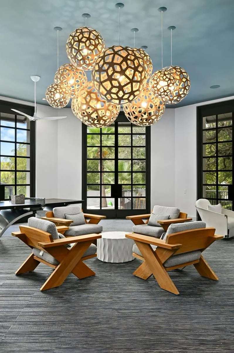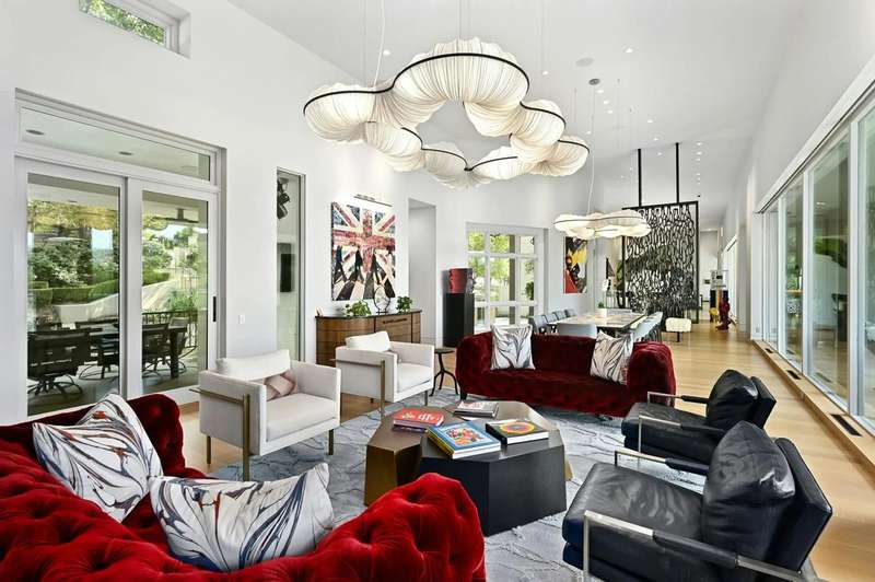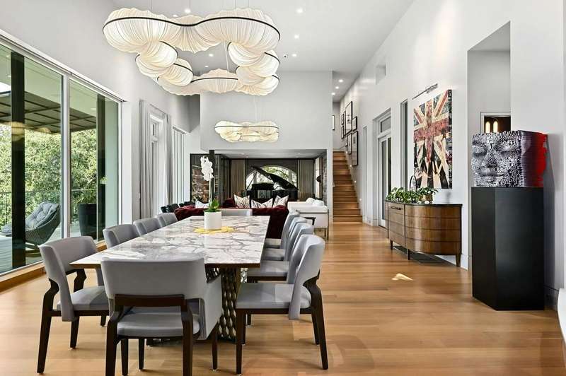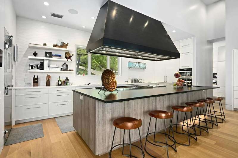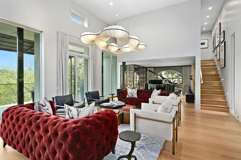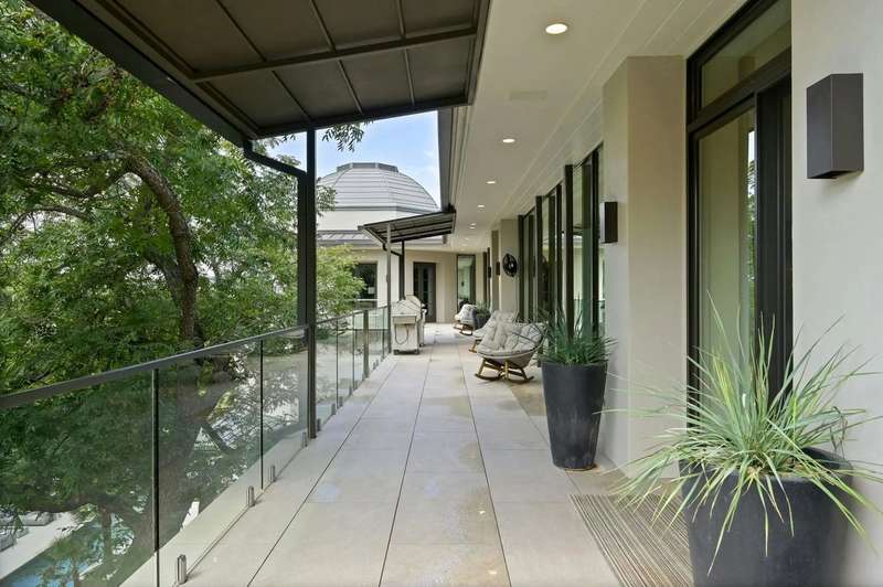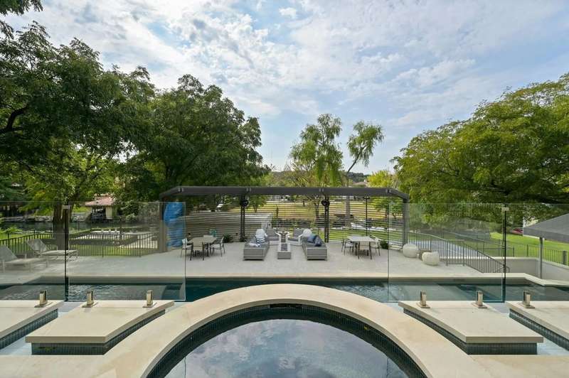 This almost 5-acre, three-tract compound on Lake Austin offers an unparalleled opportunity for luxurious waterfront living, centered around the stunning main house at 4705 Island Cove. Nestled on a privately gated 1.1-acre lot within The Island, an exclusive waterfront community inside the 360 Bridge, this modern masterpiece was meticulously updated by Britt Design Group to create a home designed for entertaining. The multi-level floorplan opens with a grand foyer that leads to breathtaking views of Lake Austin from the rotunda-style living room, which overlooks the sparkling pool and lake below. The main level also features formal and informal dining areas, a chef's kitchen with a walk-in freezer, discreet catering kitchen, and a lounge with a walk-in humidor to socialize after dinner with friends and family.