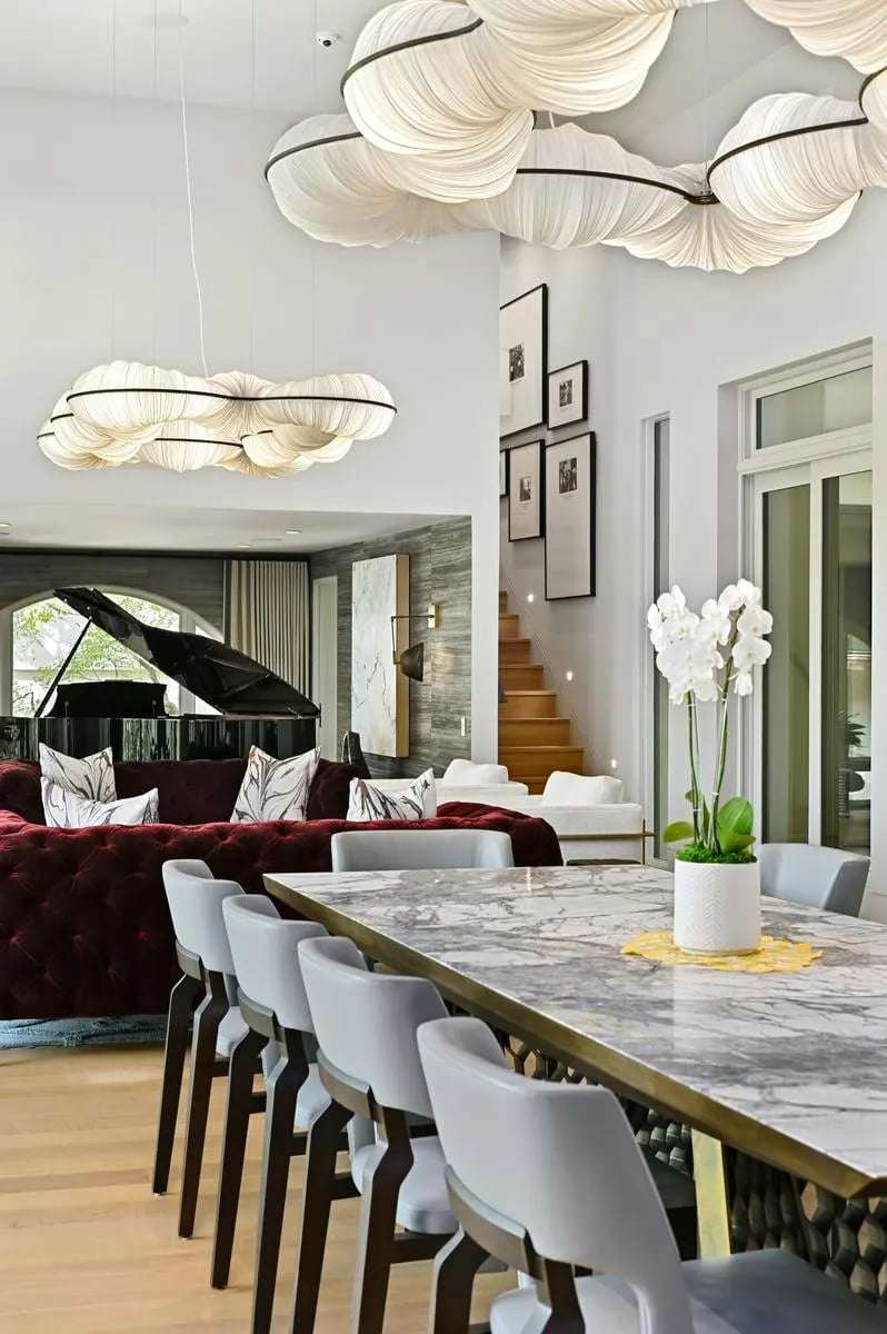 The primary suite is a serene retreat and offers a dedicated sitting area, dual walk-in closets, a backlit White Patagonia granite shower in the spa-like bathroom, plus a flexible living area that rounds out the wing. Throughout the home, eight living spaces, including a game room and a lower-level pool lounge, provide endless opportunities to host intimate gatherings or grand events. Outdoors, the luxurious amenities continue with an expansive pool, hot tub, swim-up bar, and a fully equipped outdoor kitchen, perfect for hosting lively poolside gatherings in the summer. The home is complete with three guest rooms, a lower-level kitchenette, saferoom, three-car garage and 2-slip boat garage to ensure both comfort and convenience for guests and owners alike.