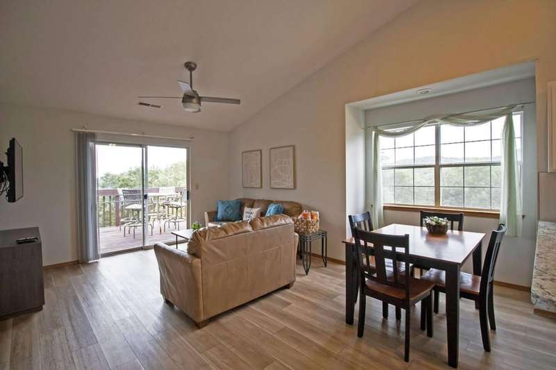 Location is everything; this top floor unit is in the closest building to walking trails and lake access, across the parking lot from the pool and hot tub facilities. This condo features views all around, with the Ozark hills and Table Rock Lake off the back deck, and Silver Dollar City out front. Close to the quaint community of Indian Point and also to the attractions of nearby Branson. This property comes turn-key so keep it as a successful short-term rental or enjoy it as your own personal lake getaway!