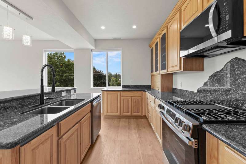 Brand New Home in desirable Mead School District! Sitting on .43 Acres and nestled on a hillside you have the most stunning views throughout. Thoughtfully designed with 4 bedrooms, 3 full bathrooms and a total of 1568 square feet of living space. Enjoy your morning cup of coffee soaking in all of the natural light in your open concept kitchen and living area. Kitchen is perfect for entertaining with gas range, custom refrigerator and beautiful granite countertops. Three bedrooms, including the primary suite located on the third floor to maximize your privacy and views. Oversized 2 car garage with additional storage area for all of your toys. All appliances stay. Located in a beautiful established neighborhood, there are no HOAs and plenty of mature natural landscaping to enjoy year round. Welcome Home!