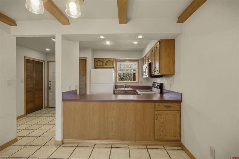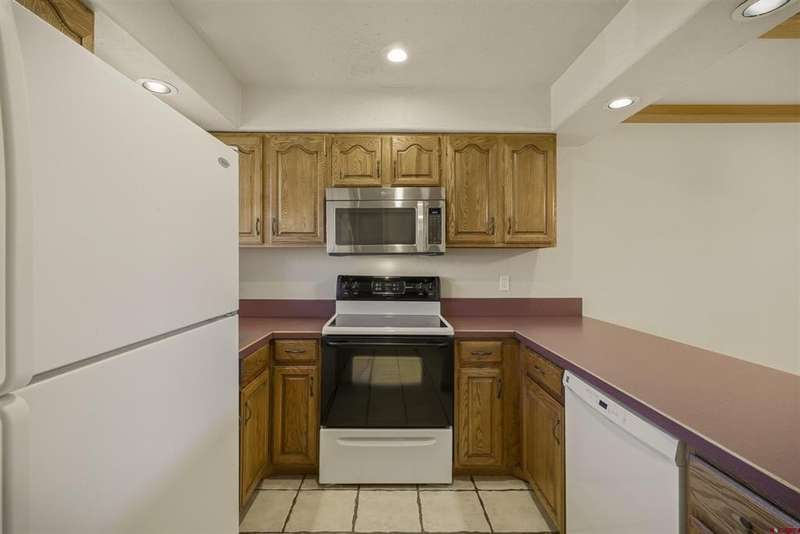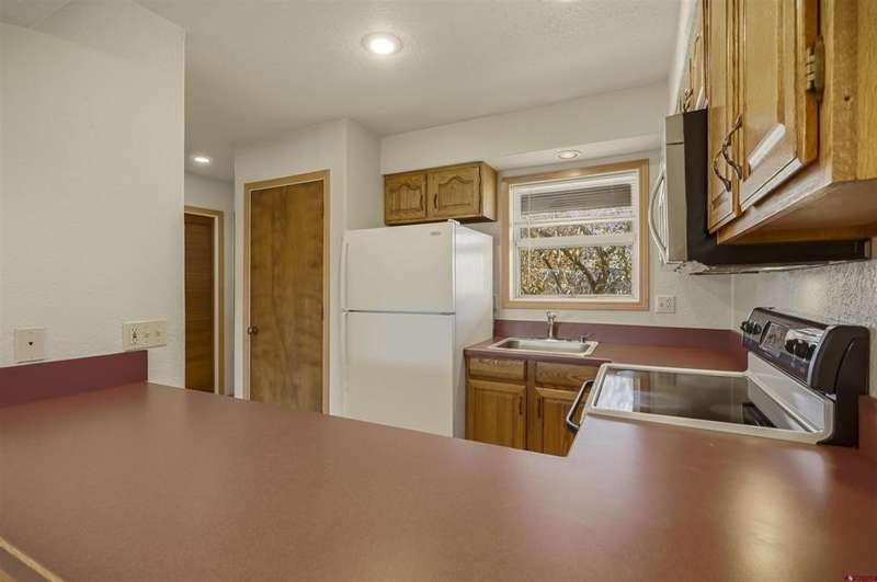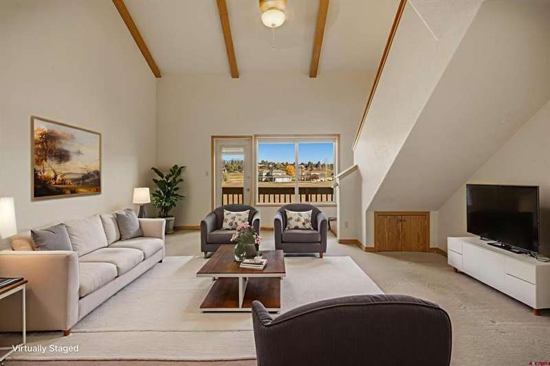 Juli Morelock, Galles Properties, C: 970-946-2137, juli@gallesproperties.com, https://julimorelock.com: SAN JUAN MOUNTAIN VIEWS! Enjoy mountain living in this highly sought after Aspenwood II condo featuring 1 bedroom + Murphy bed and 2 baths. The open living area offers vaulted ceilings, a cozy wood-burning fireplace, and tremendous natural light that highlights the mountain views beyond. Step onto the back deck to relax and take in the scenery or entertain guests. The kitchen features newer appliances and wood cabinetry, providing both warmth and functionality. Conveniently located within walking distance to coffee shops, restaurants, and the Pagosa Lakes Rec Center, this condo offers the perfect blend of comfort, views, and accessibility—ideal for a mountain getaway, rental or full-time residence. HOA dues are $322/month for Aspenwood + $335/year to PLPOA