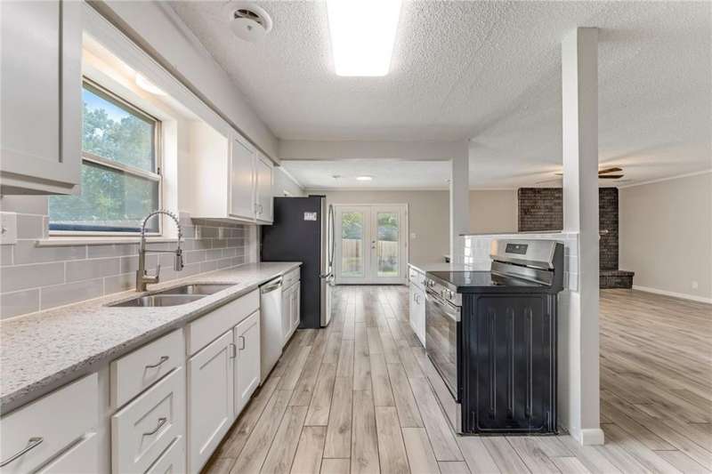Updated and just steps away from Lake Fayetteville Park & Razorback Greenway trail. NEW in 2024 and 2025: ROOF, HVAC, privacy fence, water heater, kitchen appliances, granite countertops, conversion to all electric, cabinets, paint, lighting, bathroom fans, plumbing updates, high end speed queen washer and dryer, and much more. All appliances convey, along with a new Ego electric mower, blower and string trimmer, and a large marble dining table. Exceptional storage, including 3 walk in closets. Conveniently located near shopping, dining, and entertainment with easy access to Fayetteville, Rogers and Bentonville. Move-in ready!