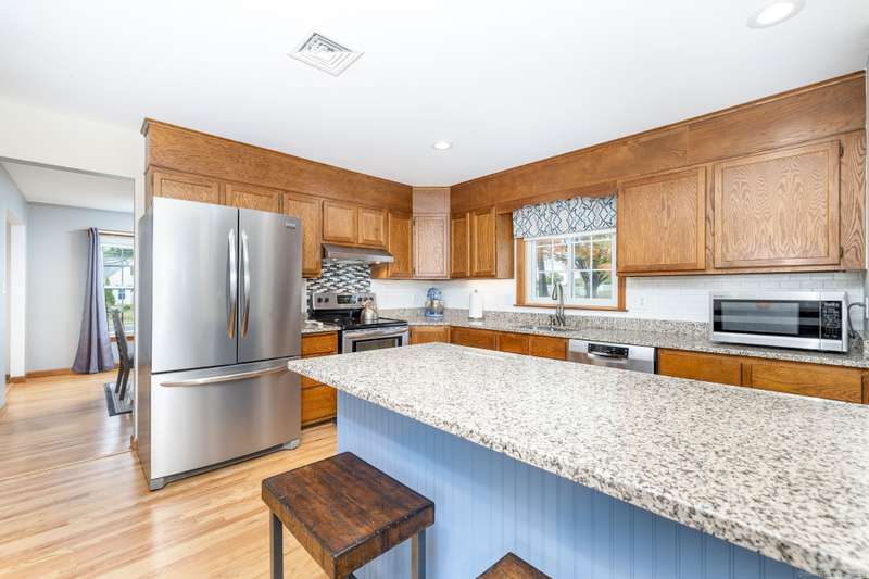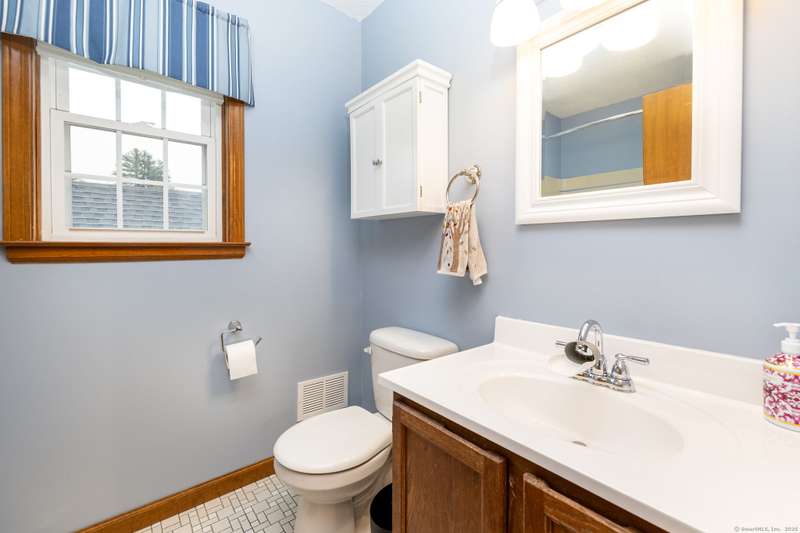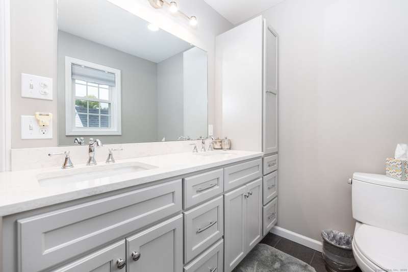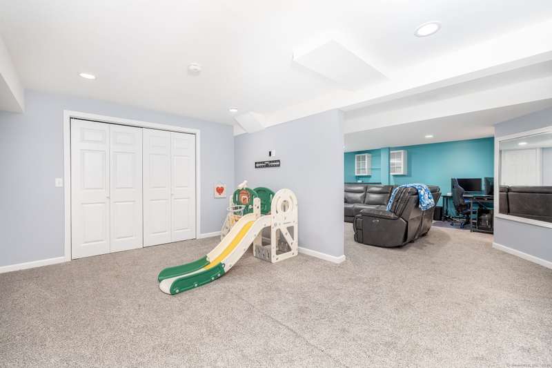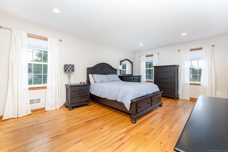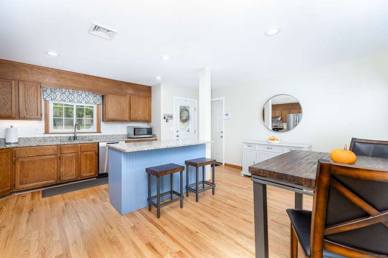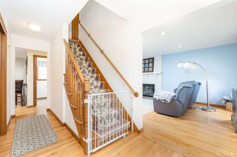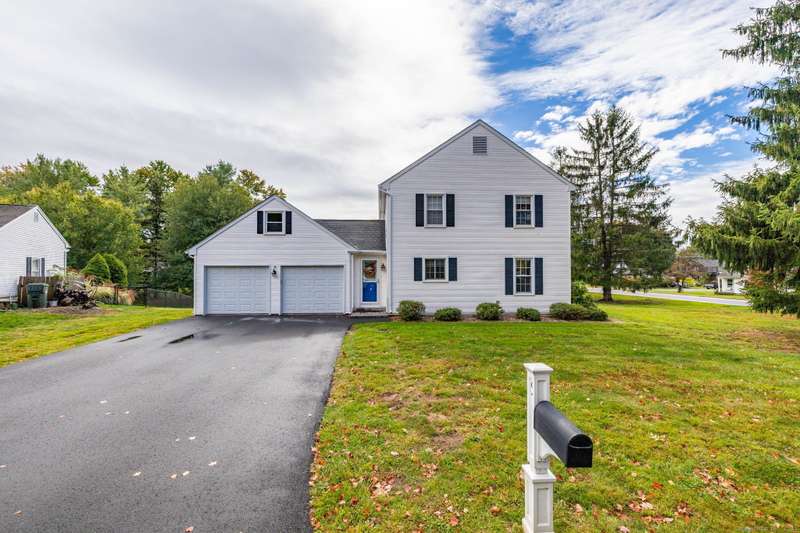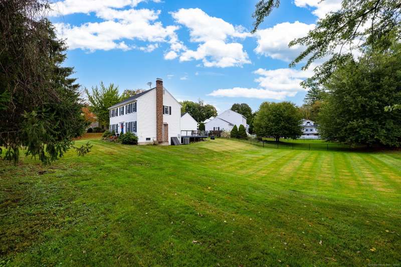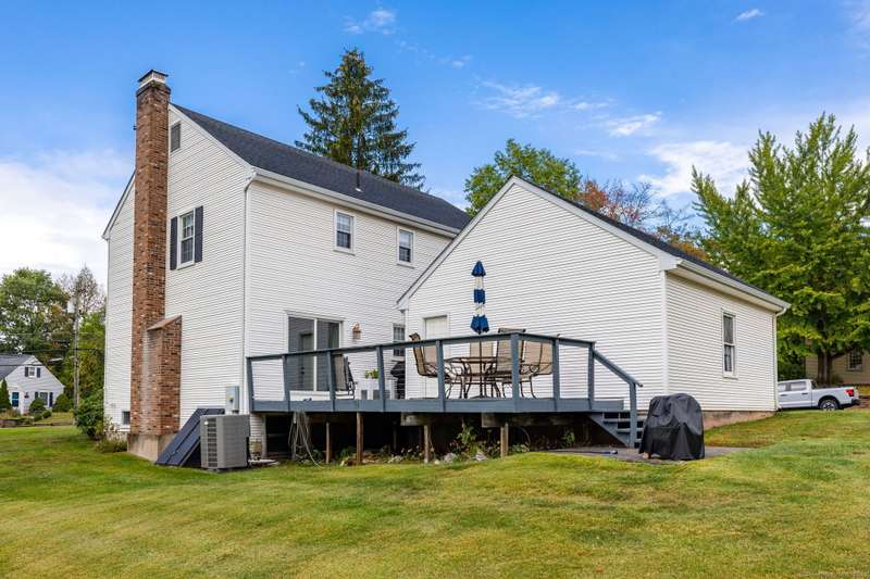 Welcome to this beautifully maintained Classic Colonial offering 1,872 square feet of living space in one of Newington's most convenient cul-de-sac locations. This home features three bedrooms, 2 full baths and 2 half-baths with hardwood floors throughout. Main level boasts a large eat-in Kitchen w/granite counters & island, front-to-back Living Room w/fireplace & sliders to oversized deck, a bright formal Dining Room & half-bath. Upstairs you will love the three spacious Bedrooms-all with great closet space and full bath. Huge Primary Bedroom Suite w/ walk-in closet has awesome remodeled full Bath that adds a touch of modern luxury! The large finished lower level provides two adjoining rooms w/versatile space for entertaining and/or a playroom. This sparkling home has a truly comfortable and well-designed layout- perfect for today's lifestyle and with plenty of room for everyone! Enjoy peace of mind with a newer roof, newer central air system. thermal windows and natural gas heating.